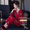 Pijama Feminino Estilo Chinês Algodão Puro Gaze Dupla Camada Primavera e Verão Fino Calça Manga Três Quartos Conjunto Vermelho Vivo
