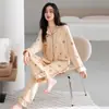 Pijama Feminina Estilo Primavera e Outono Manga Longa Novo Estilo Outono Cardigã Feminino Estilo Lapela Tamanho Plus Conjunto Roupa de Casa Pode Ser Usado Fora