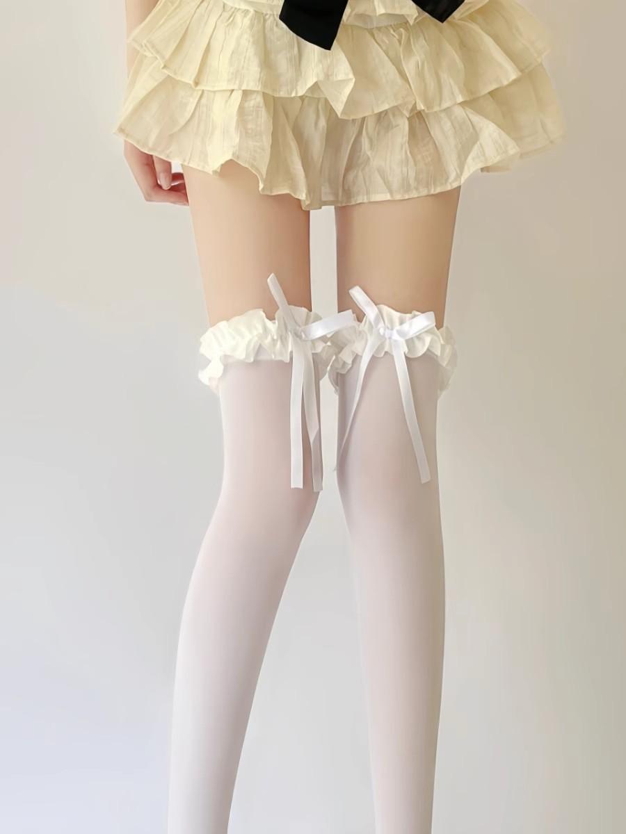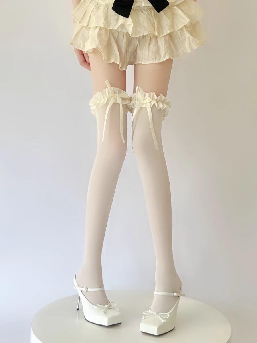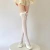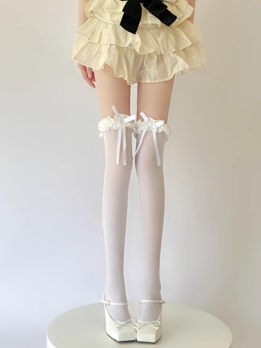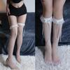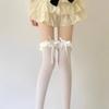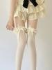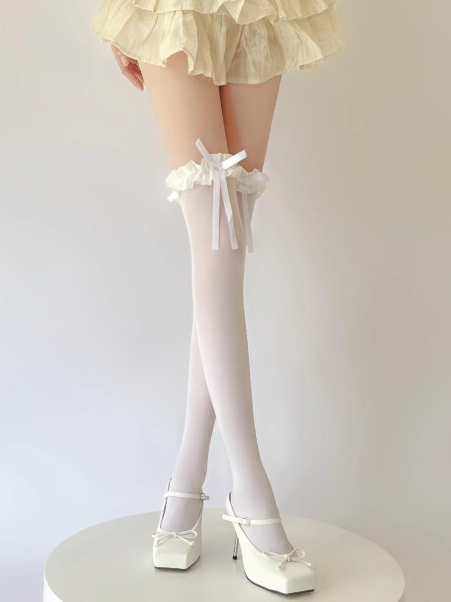 Meias de seda branca acima do joelho, desejo puro transfronteiriço, meias de renda com laço, primavera-verão, meias de renda Lolita pretas, leite e branco até a coxa