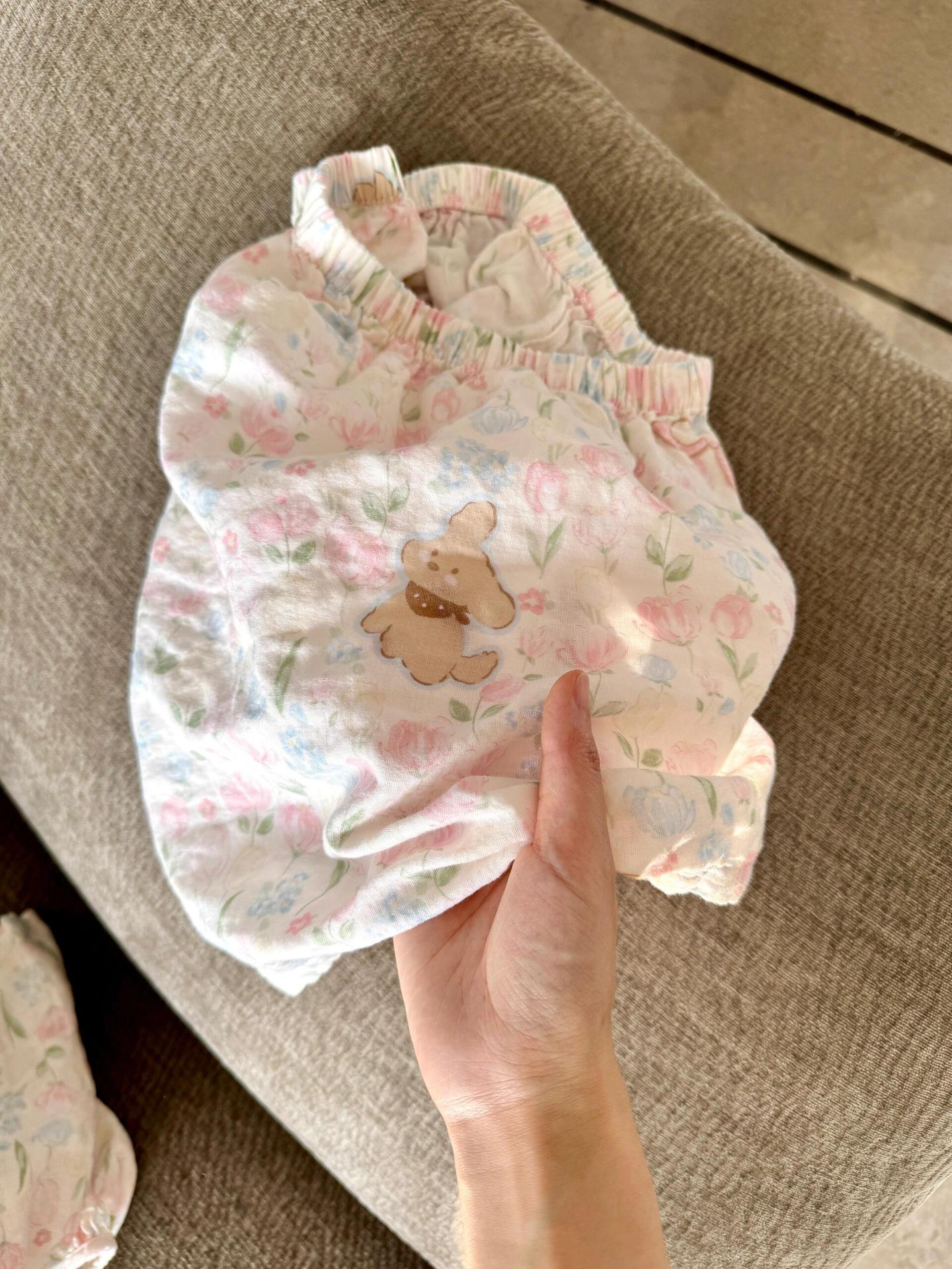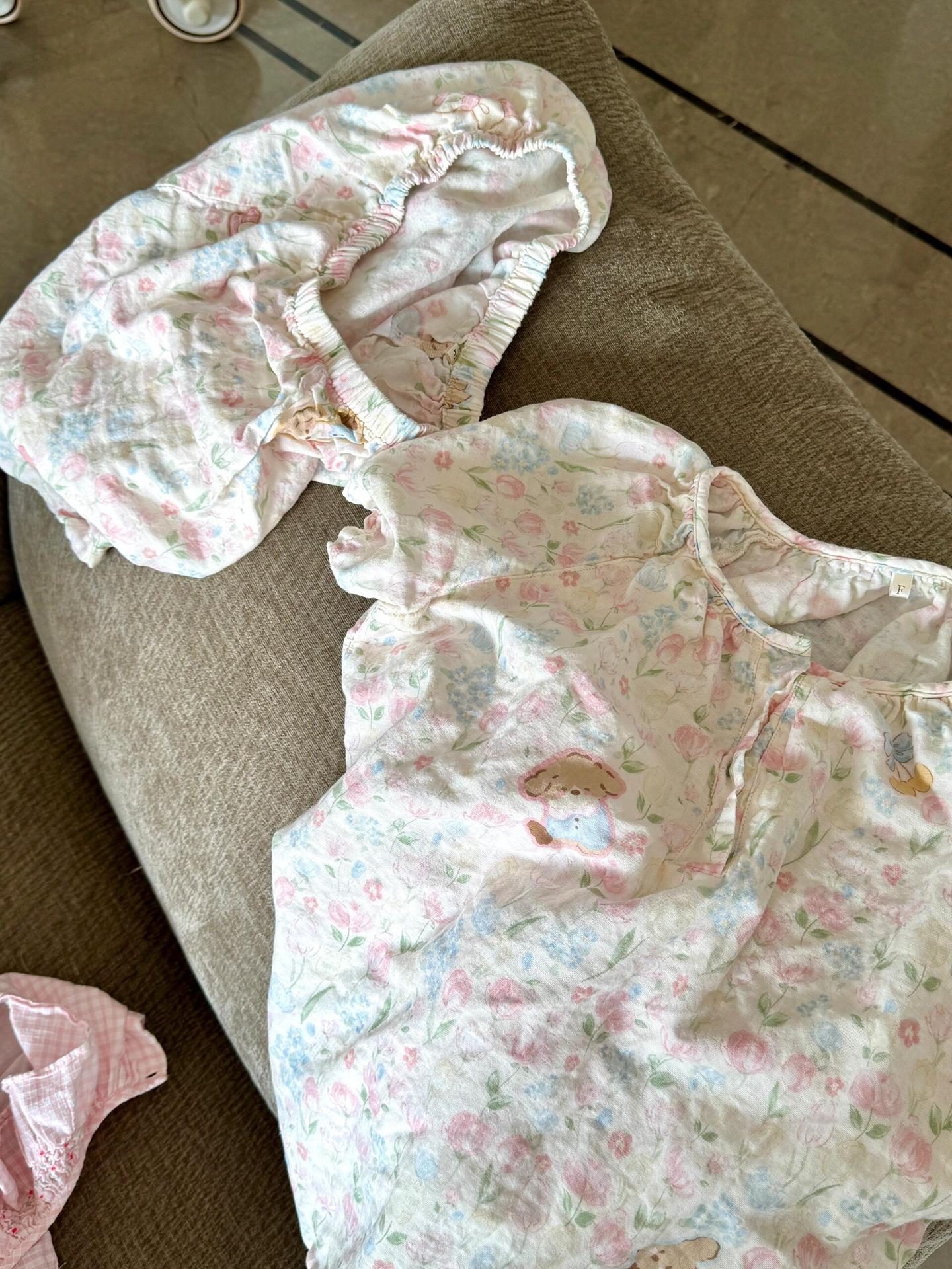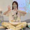 Pijama Doce Feminina de Cachorrinho Gola Redonda Estampada Feminina Verão Nova Tamanho Grande Xadrez Roupa de Casa Conjunto Pode Ser Usada Fora
