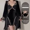 Dz Guiruo Marca Lingerie Sexy Decote V Profundo Cetim Slim Camisola de Suspensórios Robe Externo Longo Conjunto de Roupa de Casa 5485