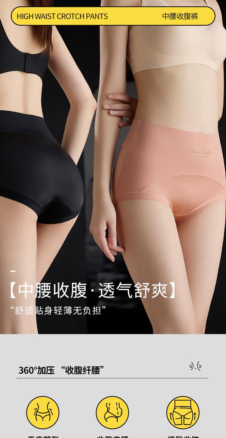 Cueca Cintura Média Modeladora e com Borla na Barriga Cueca Feminina Seda de Amora Antibacteriana Pós-parto Afina a Cintura Quadril Pêssego Cueca com Borla no Corpo