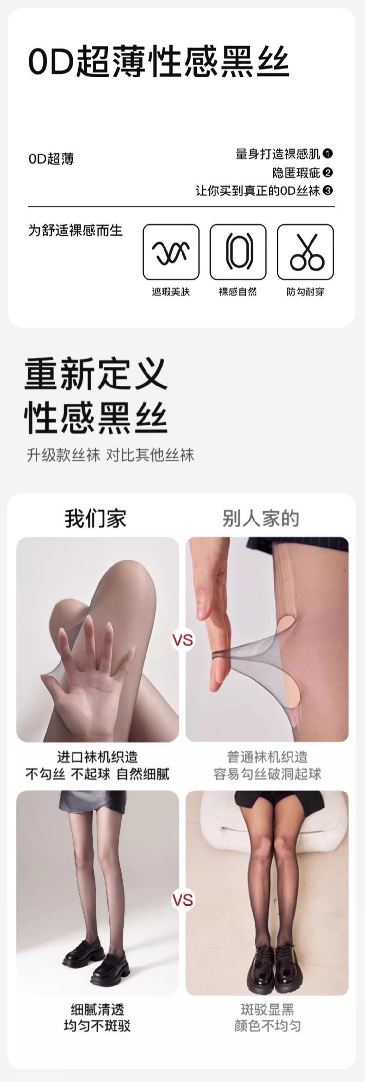 Meias 0D Sexy Modeladoras Pretas Estilo Puro Desejo Pernas Bonitas Meia-Calça Base Disfarçadora Meias Anti-Enrosco e Resistentes ao Desgaste Meias Femininas Finas de Verão