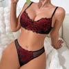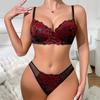 Lingerie Feminina Sexy de Renda Transfronteiriça Conjunto de Sutiã de Aro com Bojo Push-up Plunging de Camada Dupla Estilo Fino Em Estoque Atacado