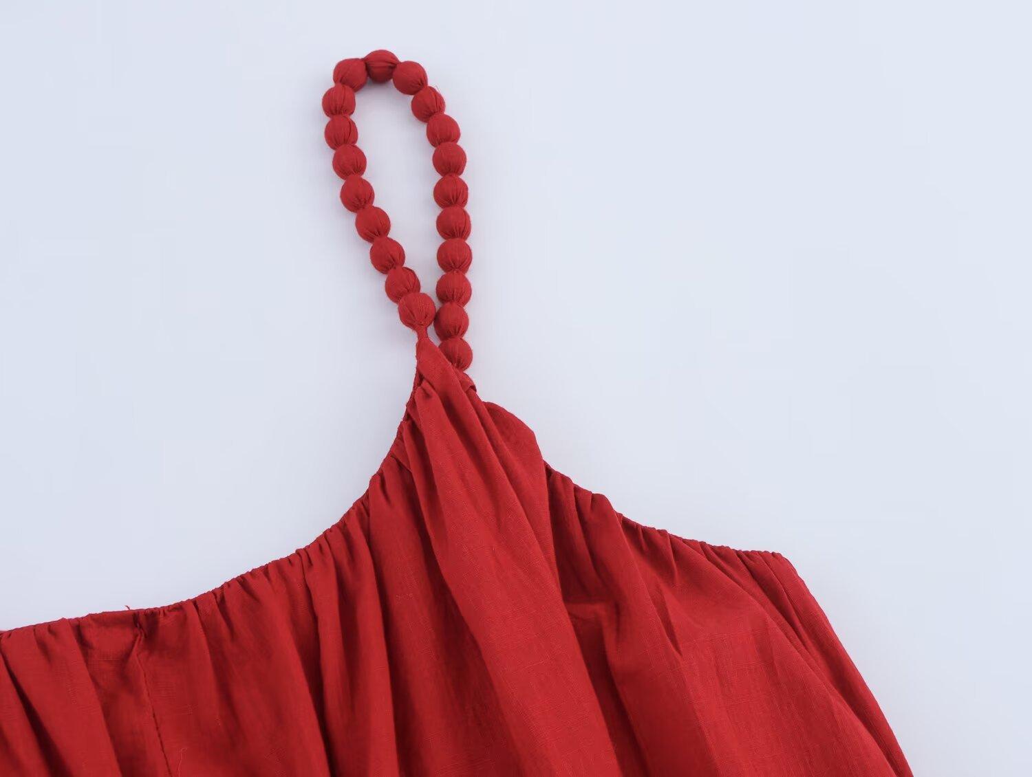 2025 Verão Novo Europeu e Americano Transfronteiriço Roupa Feminina Moda Elegante Vestido de Alças com Miçangas W085 253815