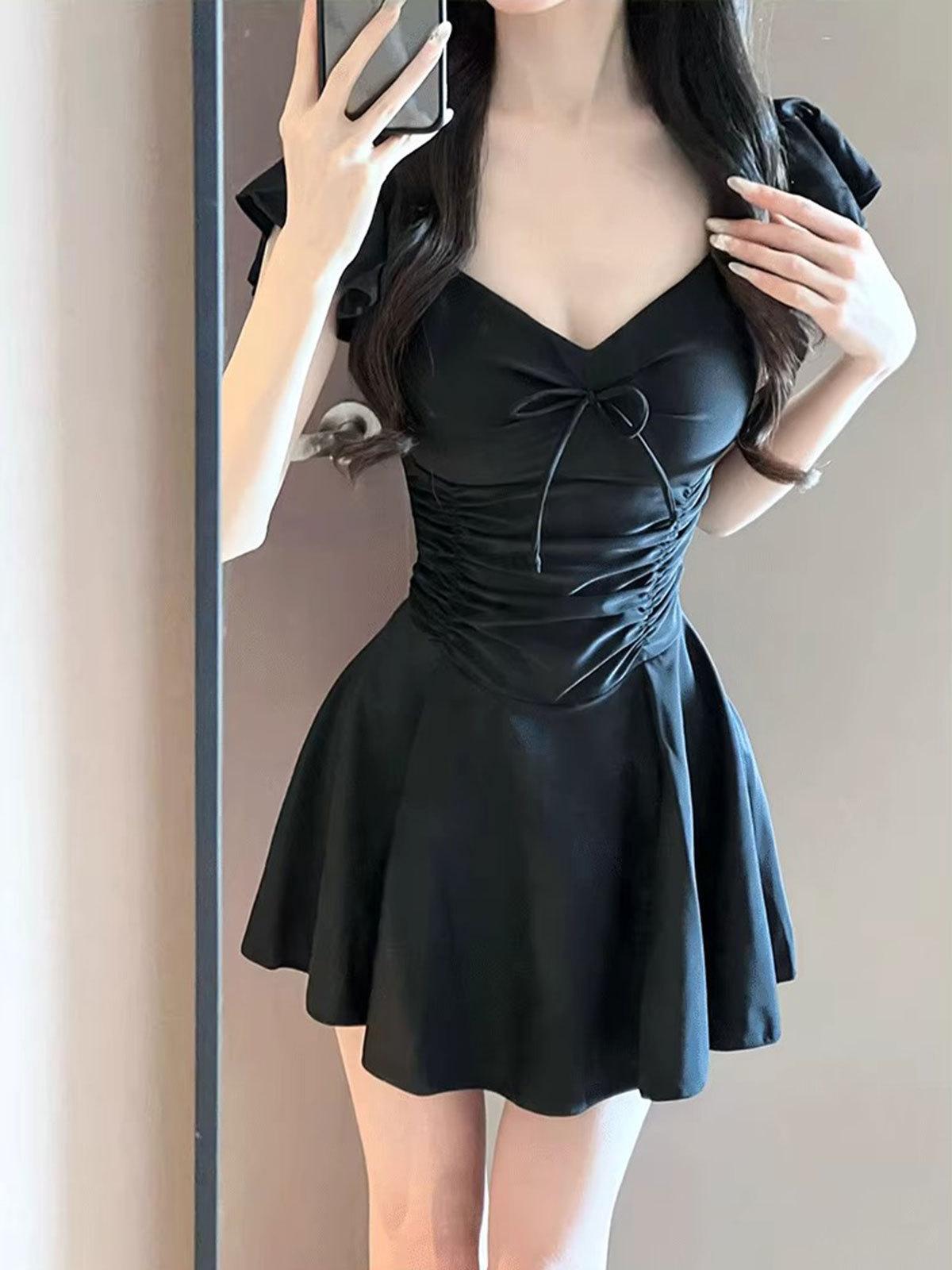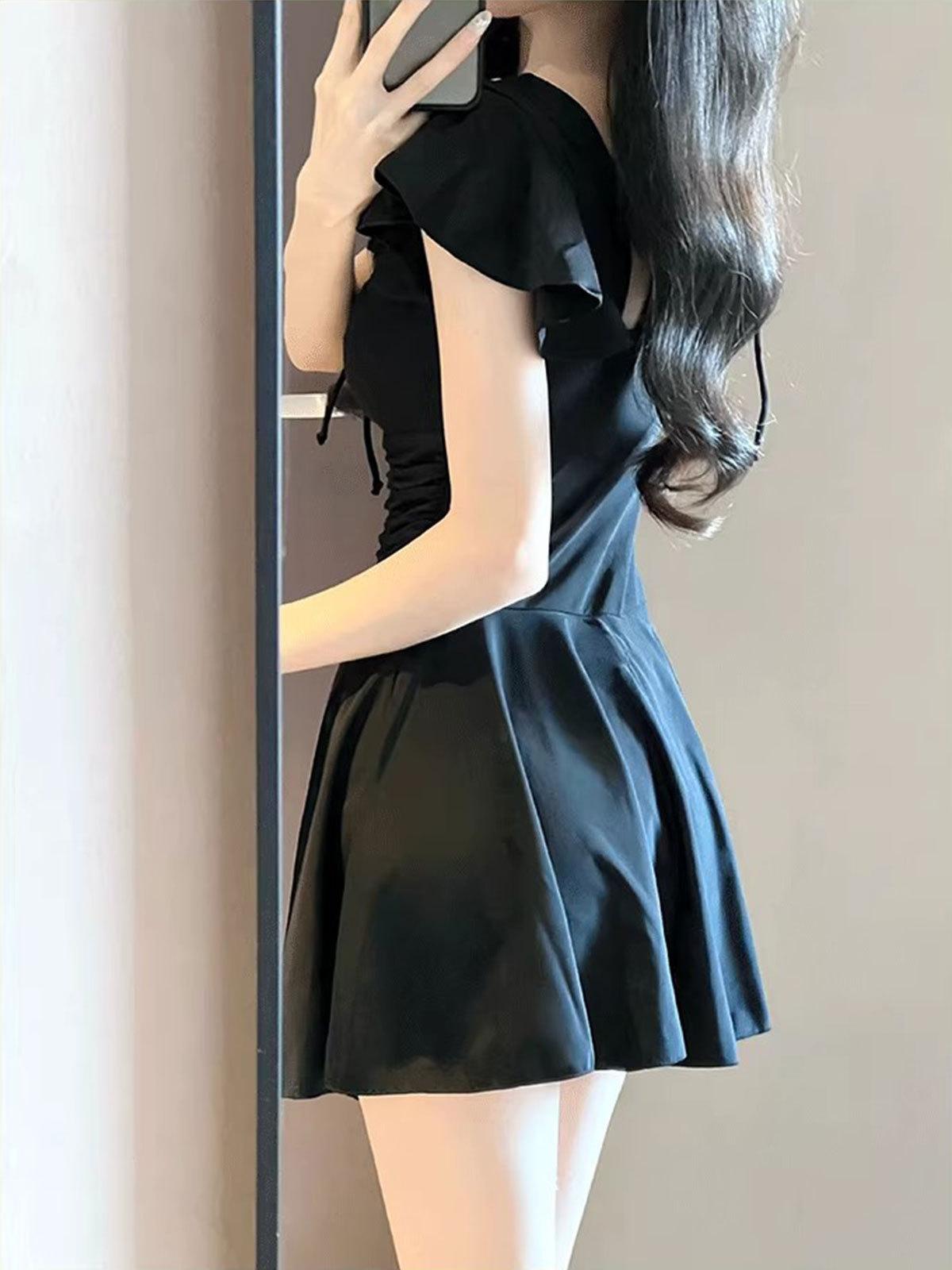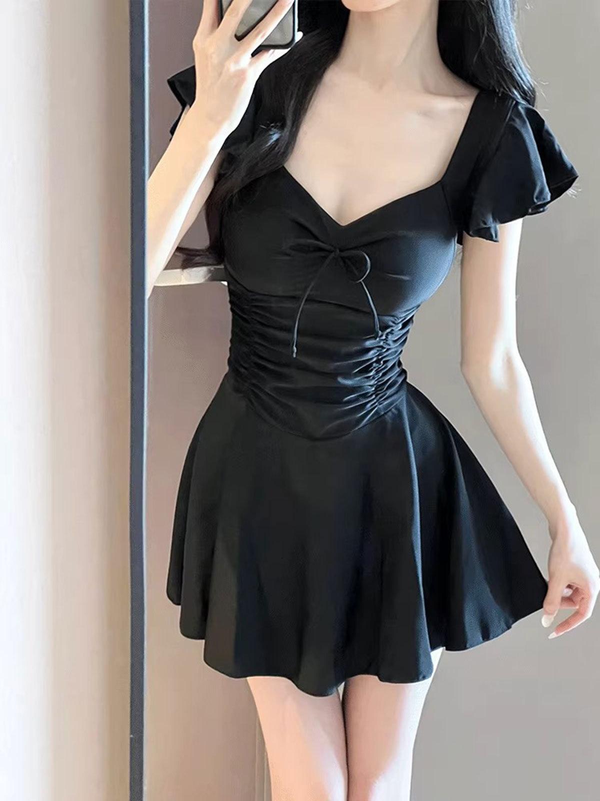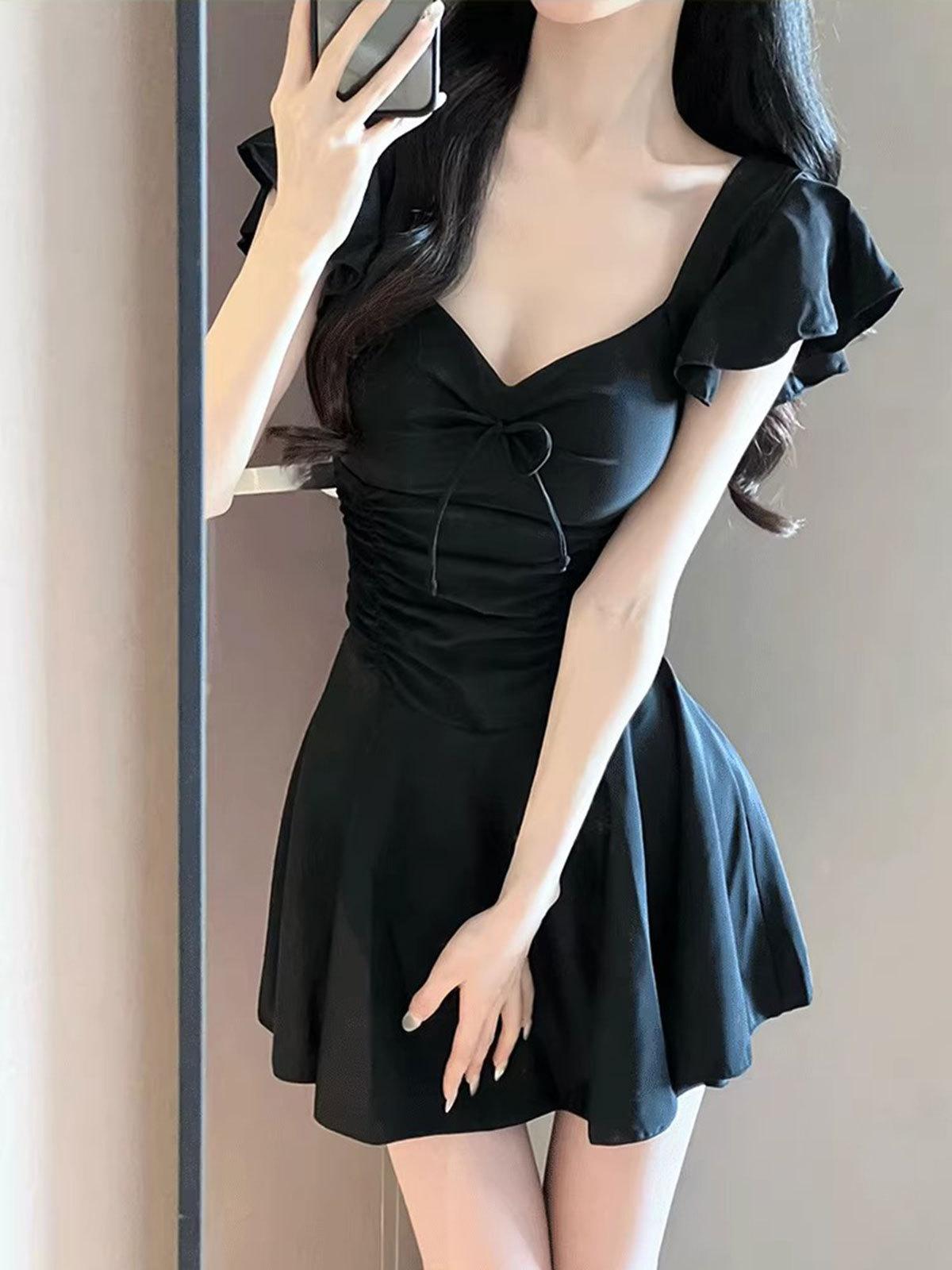 2025 Nova Chegada Fato de Banho de Águas Termais Feminino Emagrecedor Conservador Cobrindo a Barriga Saia Vermelho Retrô Pequeno Busto Levanta Fato de Banho de Férias