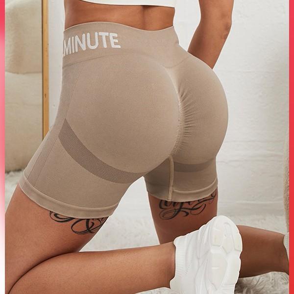 Shorts de Fitness Europeus e Americanos Sem Costura Três Pontos para Mulheres, Shorts Esportivos de Cintura Alta com Efeito Levanta Bumbum, Shorts de Yoga Justos de Secagem Rápida