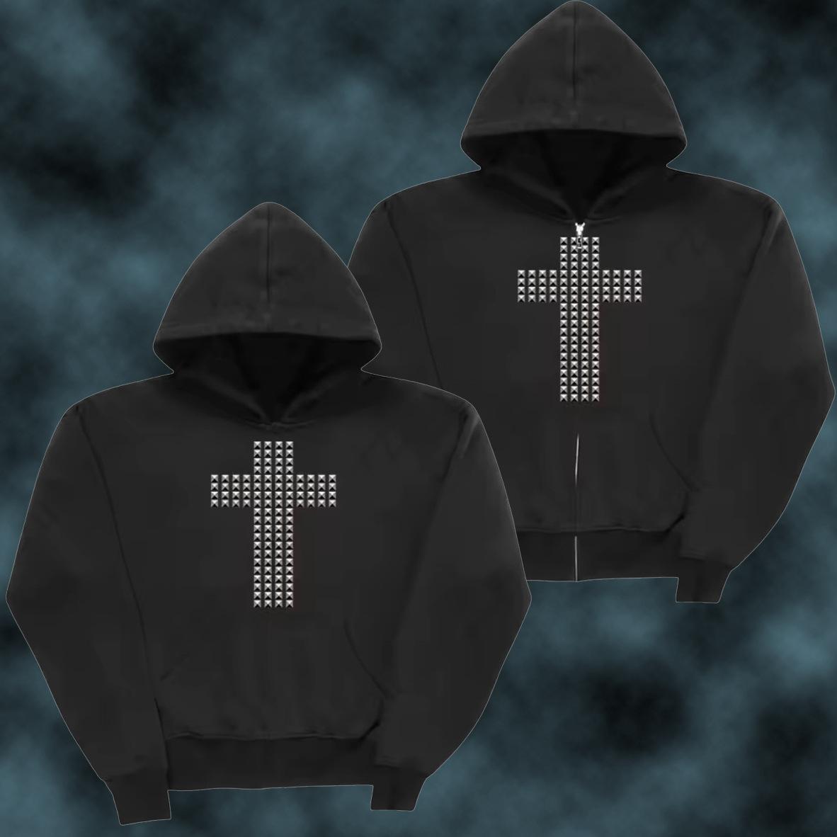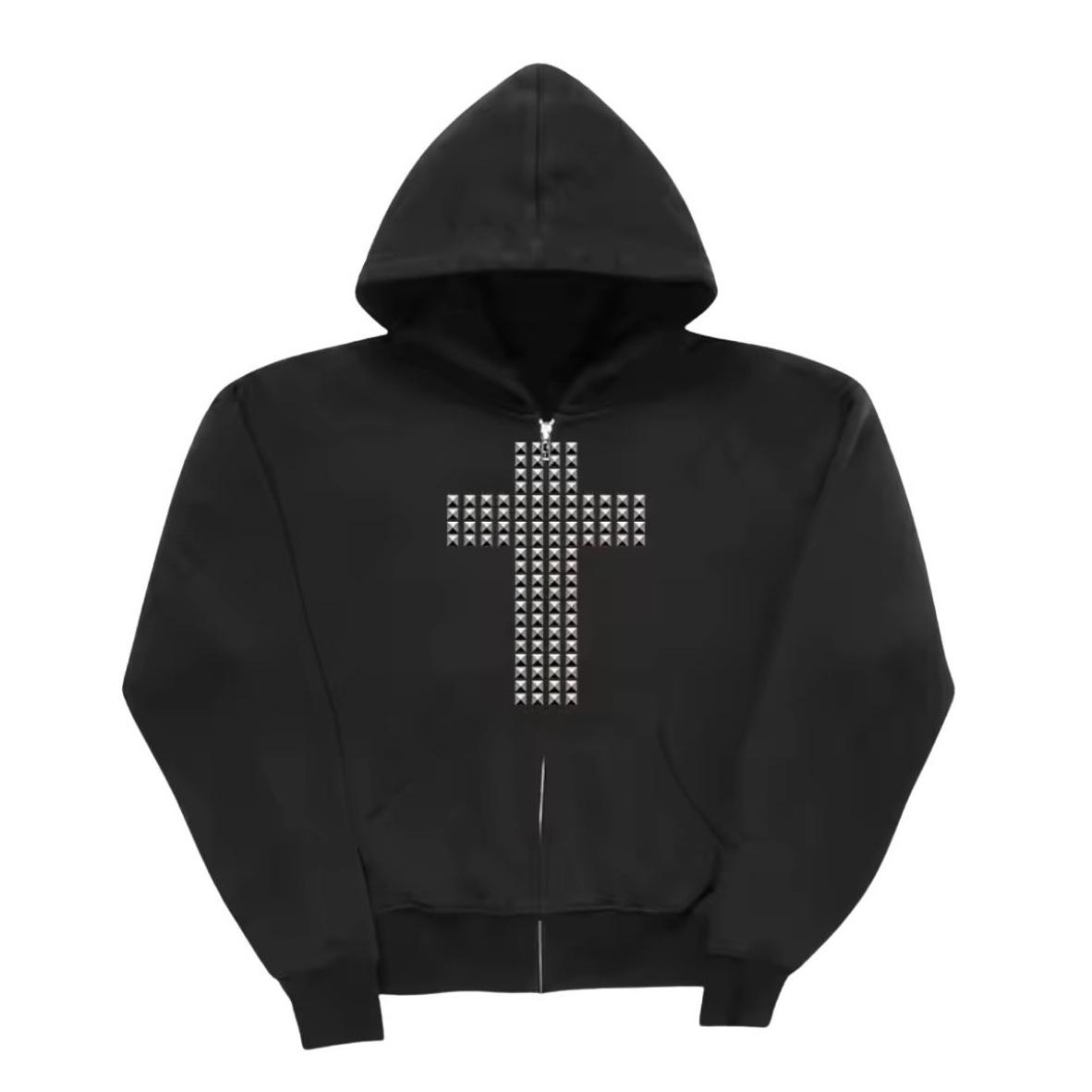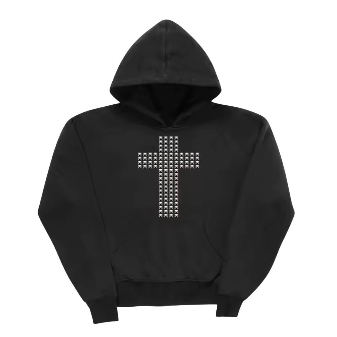 Moda feminina personalizada transfronteiriça cruz strass quente estilo dark ins outono e inverno moletom casual solto com capuz