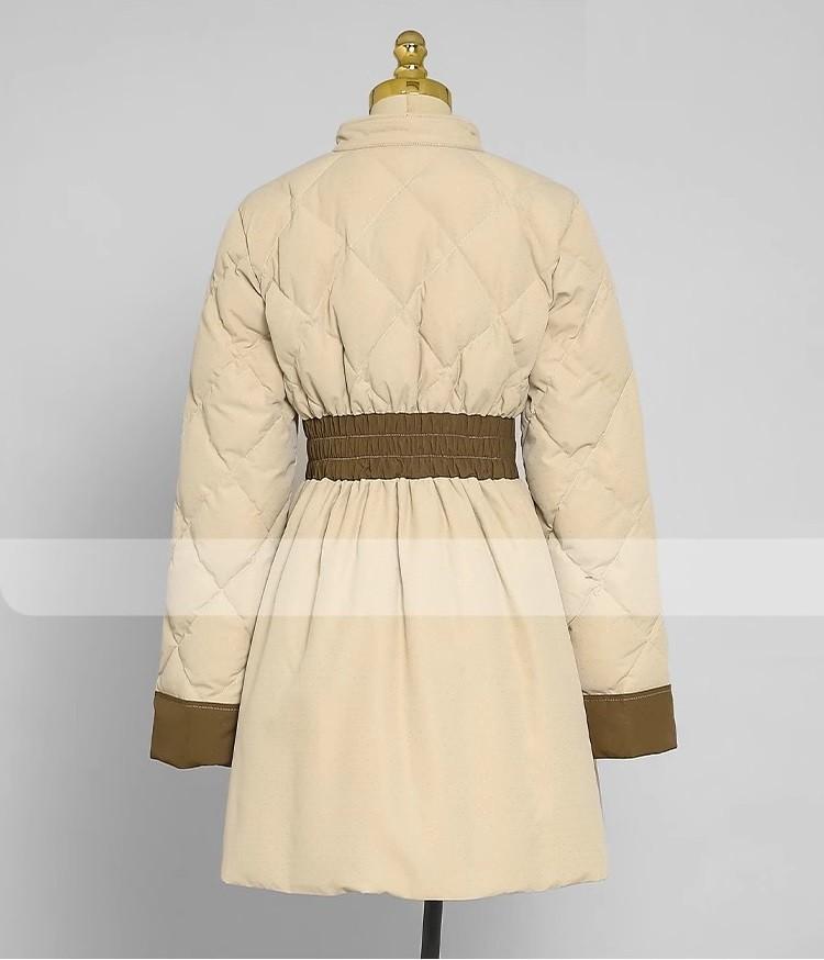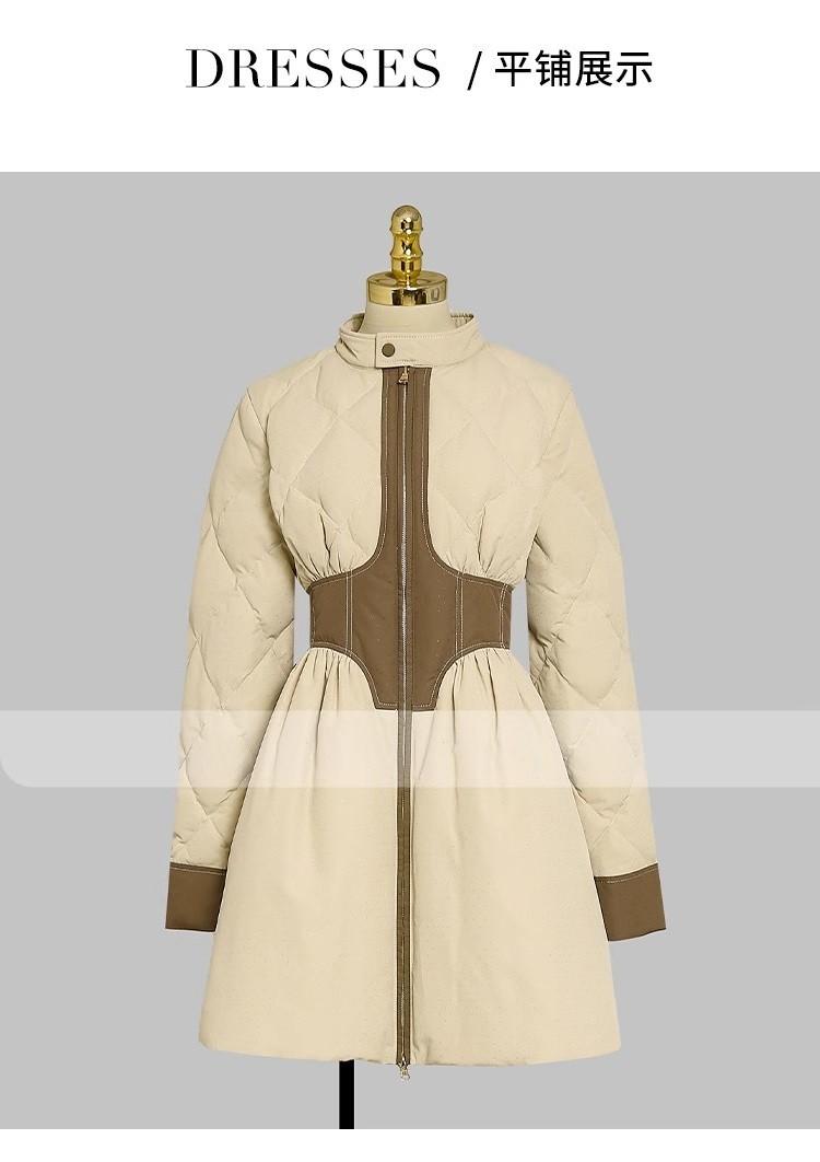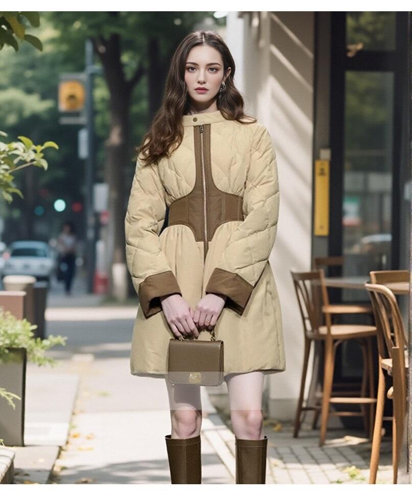 Inverno Nova Moda Casaco Elegante de Comprimento Médio para Afinar a Cintura para Baixo de Pato Branco Quente Casaco de Penas Contrastante
