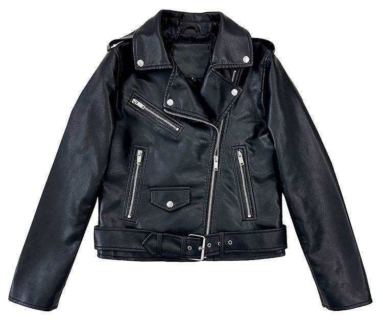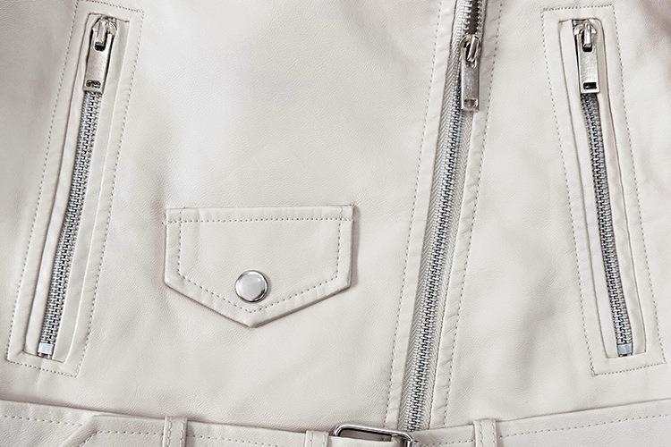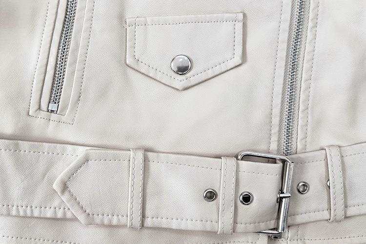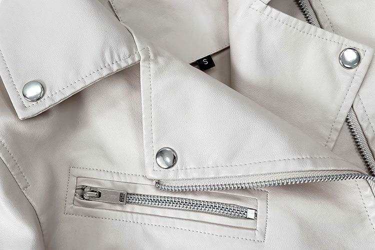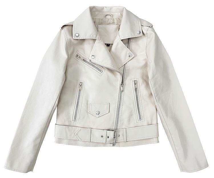 Grande Estoque Jaqueta de Couro Jaqueta de Couro para Motociclista Casaco Feminino Curto Outono Lapela Cor Sólida Casaco de Couro PU