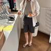 2303-1 Lyocell Tencel Stretch Calça Média Azul Nostálgico Pronta Estilo Coreano Básico Reta Shorts Pintados à Mão