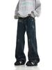 Vibe High Street Europeia e Americana Jeans Denim Salpicado Lavado Vintage para Homens e Mulheres, Calças Soltas Retas de Perna Larga com Caimento, Super em Alta