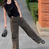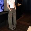 Calças Cargo Retrô de Bolso Novo Outono 2025 Calças Largas de Perna Reta Calças Compridas Cintura Baixa Calças Casuais Estilo Americano Feminino