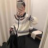 Suéter cardigã falso de duas peças emendado de outono e inverno, estilo retrô americano preguiçoso, senso de design simples, casaco de malha solto