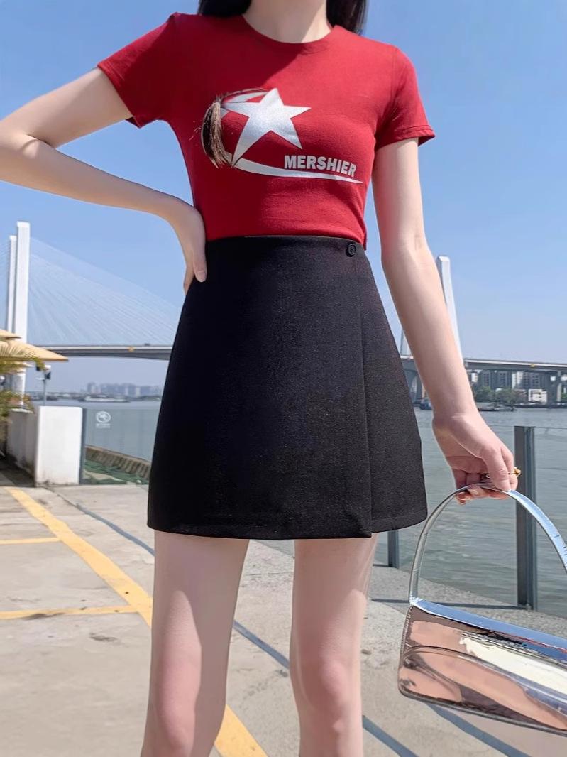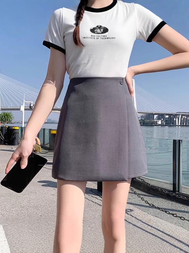 Saia Curta Irregular Saia Midi Mulher 2025 Novo Primavera/Verão Cintura Alta Anti-Exposição Profissional Casual A-Line Bodycon Saia