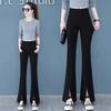 Terno Feminino Calças Flare Primavera e Outono Novo Super Bonito Cintura Alta Emagrecimento Caimento Tamanho Pequeno Calças Microflare Pretas Spandex