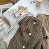Cardigã Tricotado Transfronteiriço Outono e Inverno Feminino Novo Estilo Coreano Estilo Preguiçoso Solto Sofisticado Macio Ceroso Colete Suéter Conjunto de Três Peças
