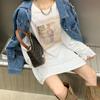 Camiseta Feminina de Manga Comprida e Gola Redonda Ligeiramente Transparente para o Verão, Blusa Larga e Confortável para Proteção Solar, Top Branco Versátil de Comprimento Médio