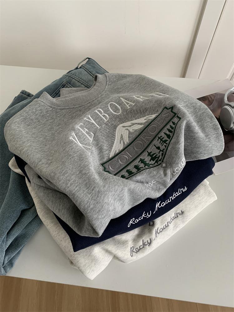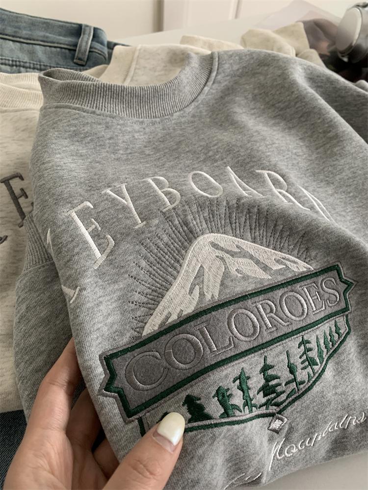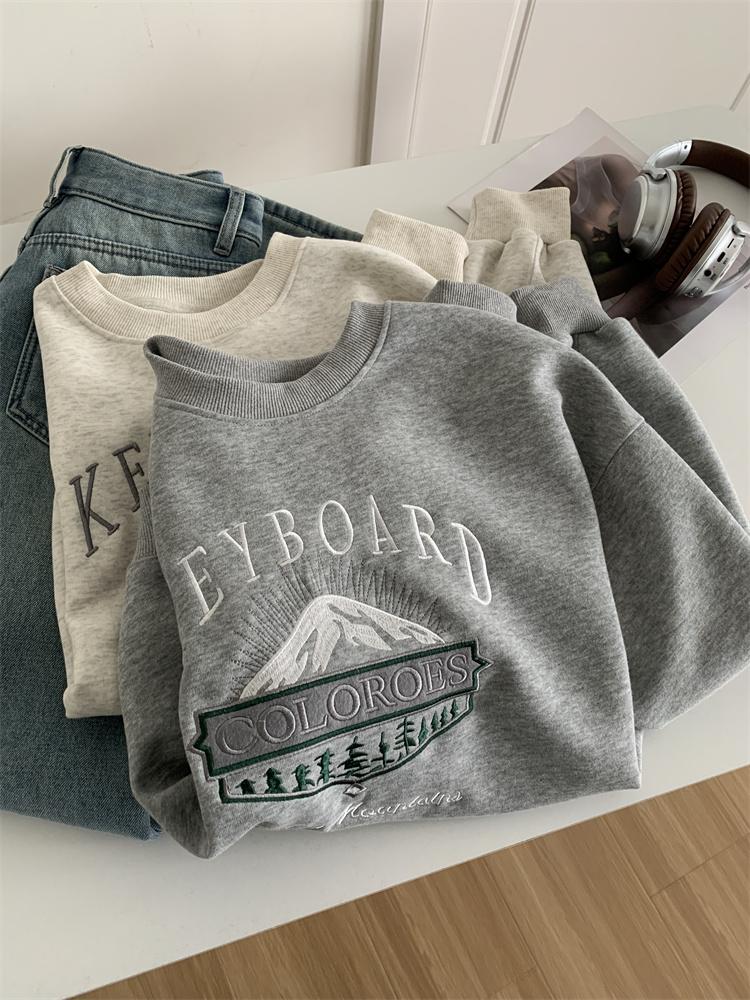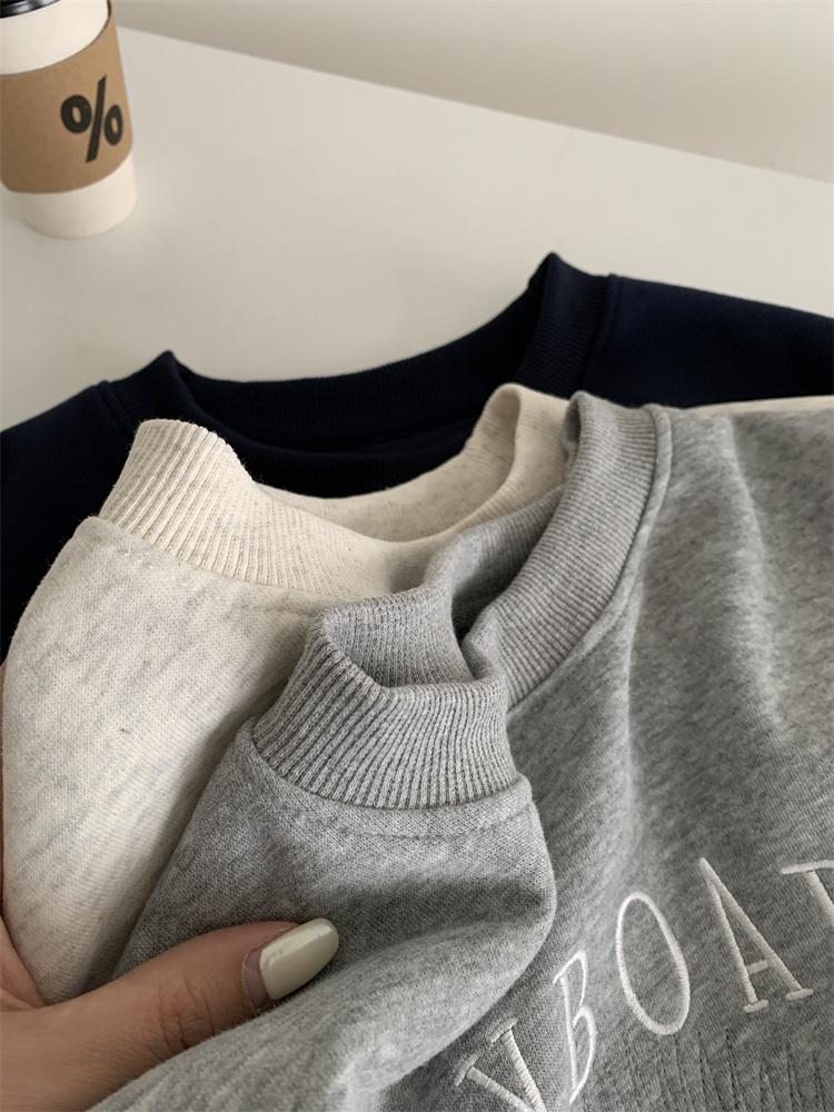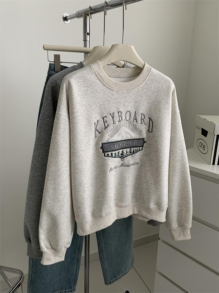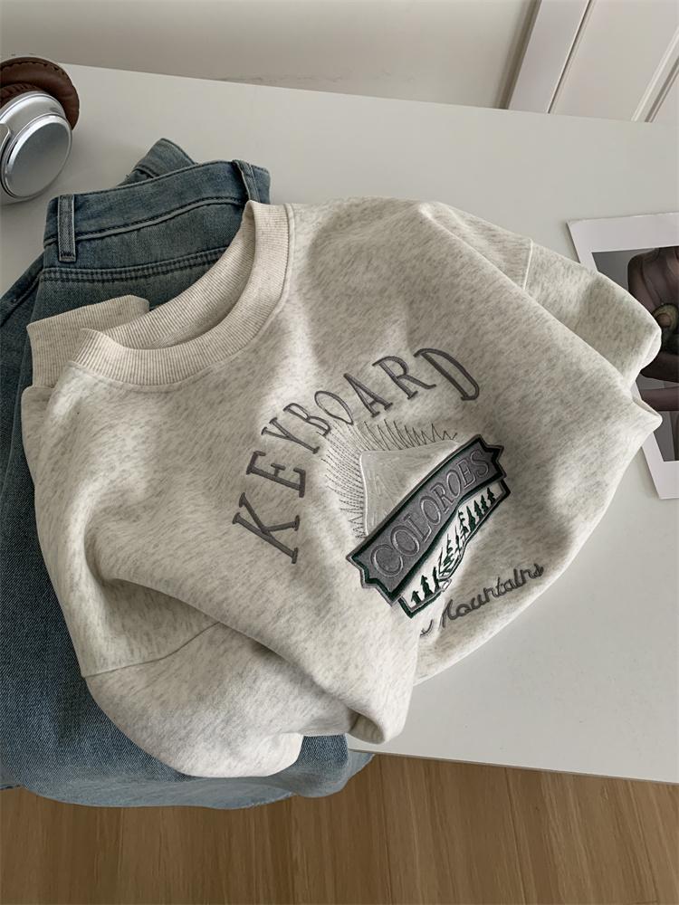 Moletom Pulôver de Gola Redonda com Bordado Pesado para Mulheres, Solto Casual Redutor de Idade Estilo Coreano Primavera e Outono Slim Versátil Top Estudantil Moderno