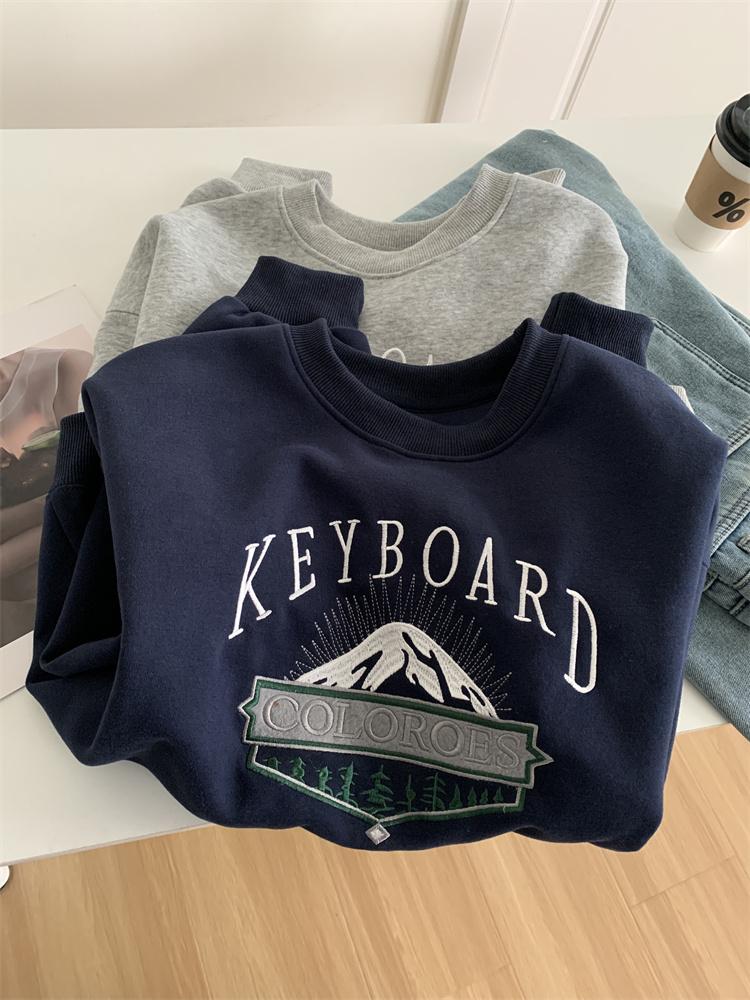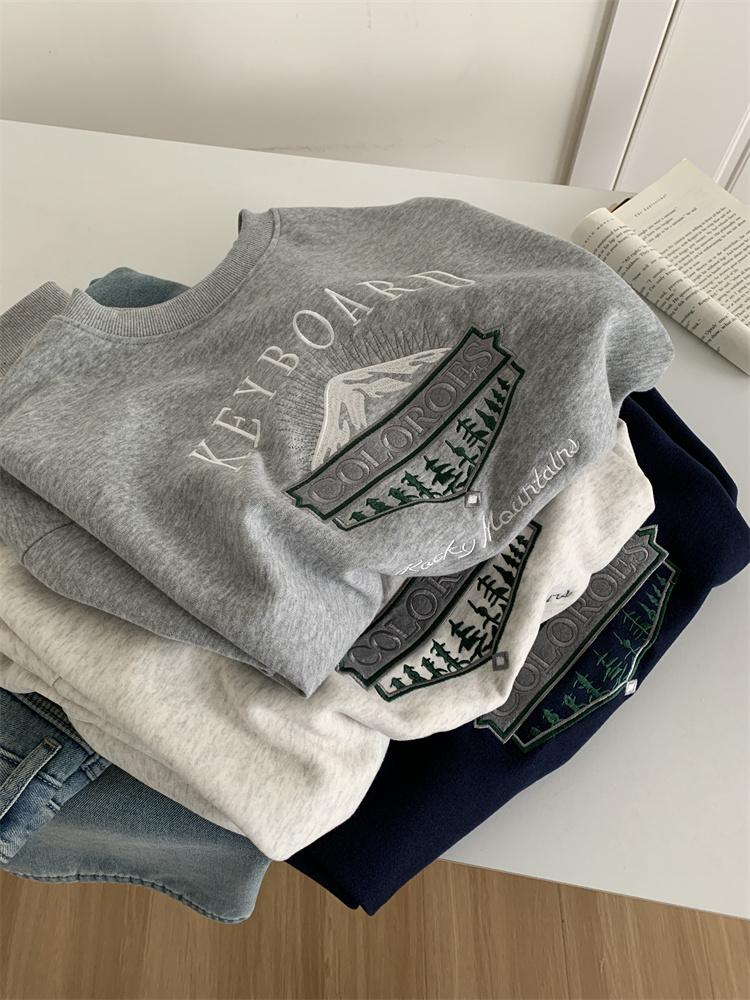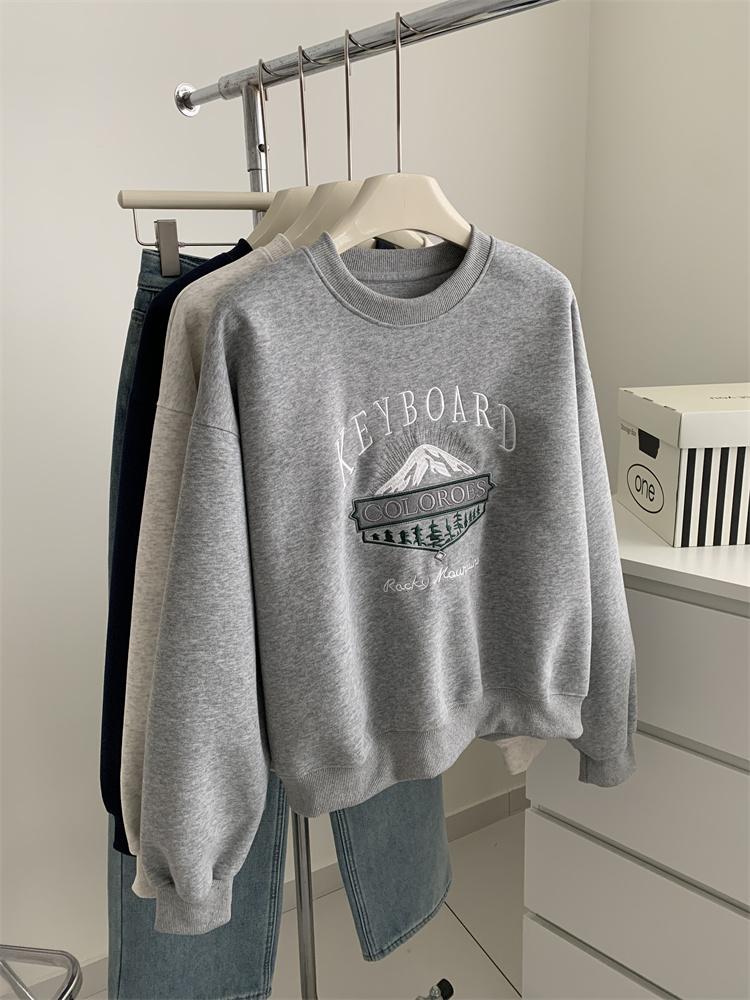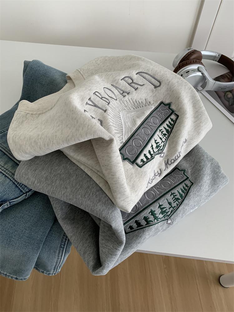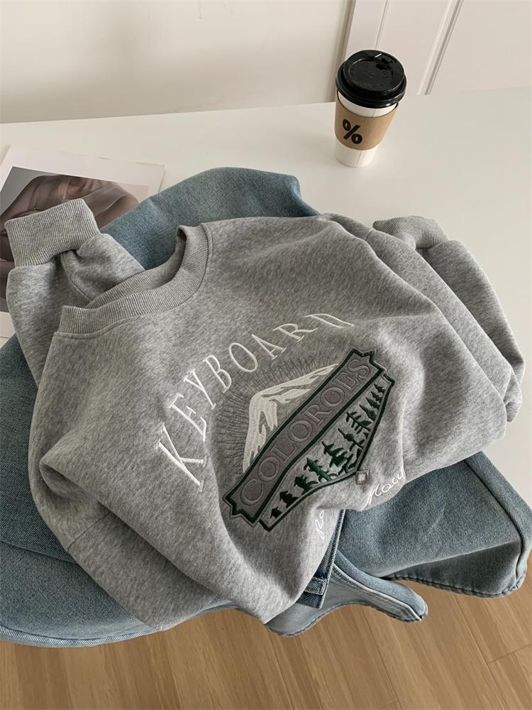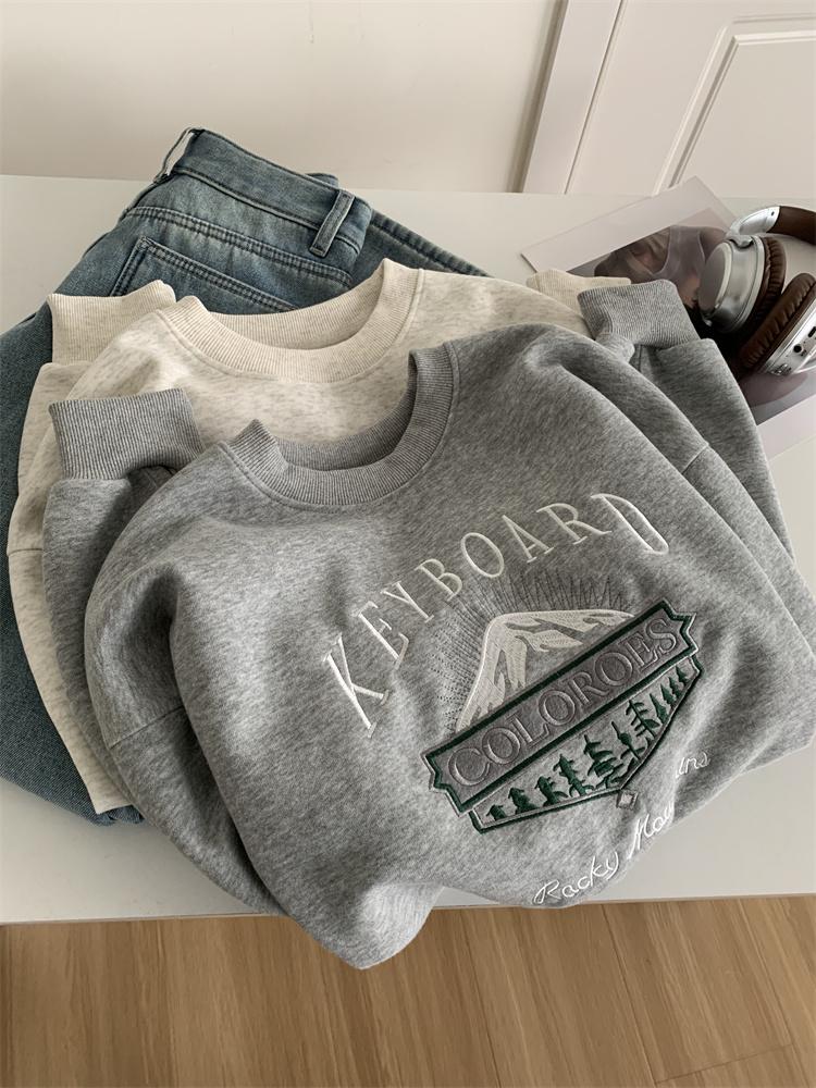 Moletom Pulôver de Gola Redonda com Bordado Pesado para Mulheres, Solto Casual Redutor de Idade Estilo Coreano Primavera e Outono Slim Versátil Top Estudantil Moderno