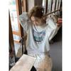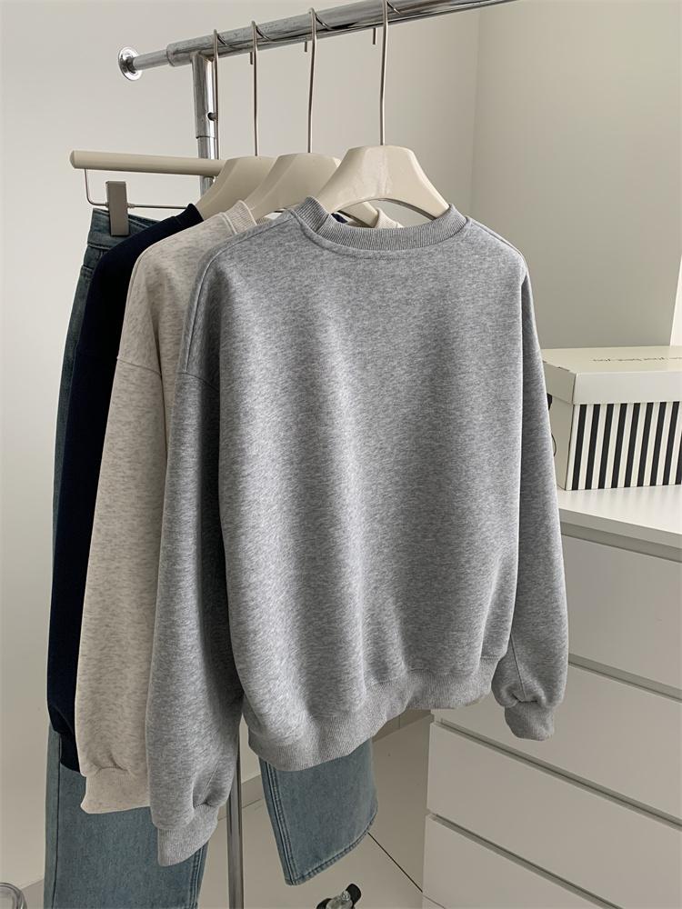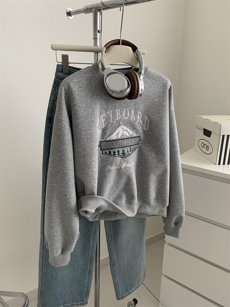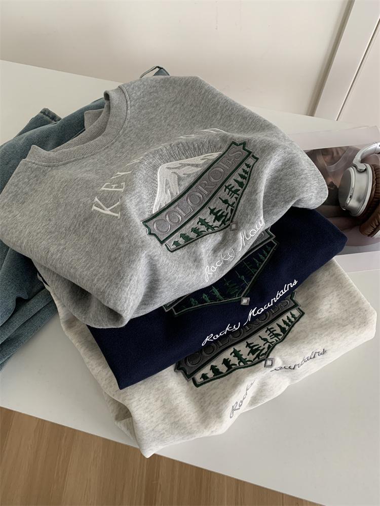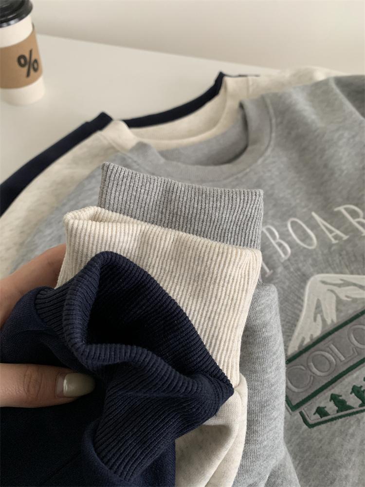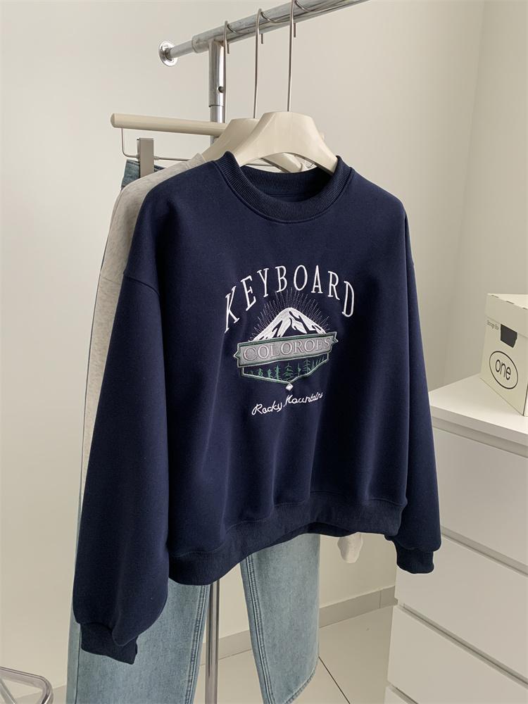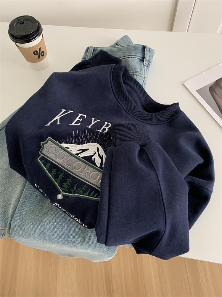 Moletom Pulôver de Gola Redonda com Bordado Pesado para Mulheres, Solto Casual Redutor de Idade Estilo Coreano Primavera e Outono Slim Versátil Top Estudantil Moderno