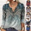 2024 Outono Europeu e Americano Amazon Transfronteiriço Top de Manga Longa com Gola Redonda Camiseta Estampada Retrô Moda Casual Mais Fácil de Combinar