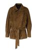 Jaqueta de Couro Genuíno Hn5197 Camada Superior Camurça de Cabra Estilo Europeu e Americano Gola com Cinto Jaqueta Corta-vento de Comprimento Médio para Mulheres