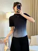 Camisa de Chiffon com Combinação de Cores Irregular Feminina 2025 Verão Nova Solta Plissada Manga Curta Versátil Elegante