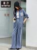 Conjunto de Camisa de Colarinho Pontudo com Bolso de Renda Nova Zhenxi e Calça Comprida Casual de Duas Peças Feminino SQ935