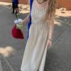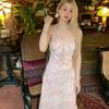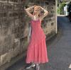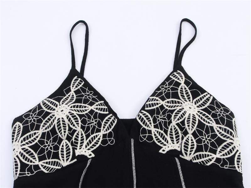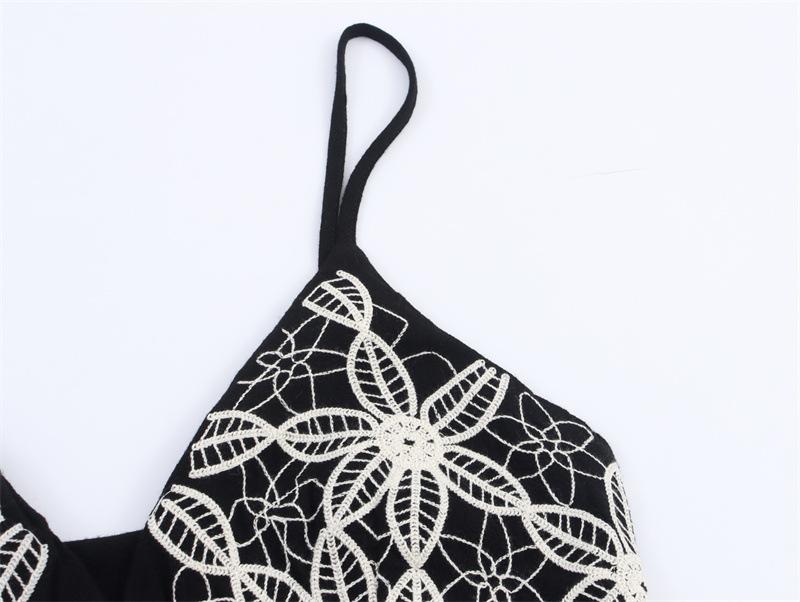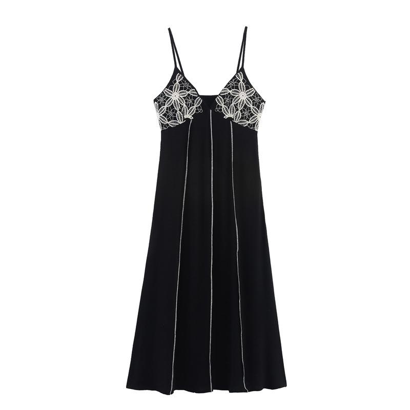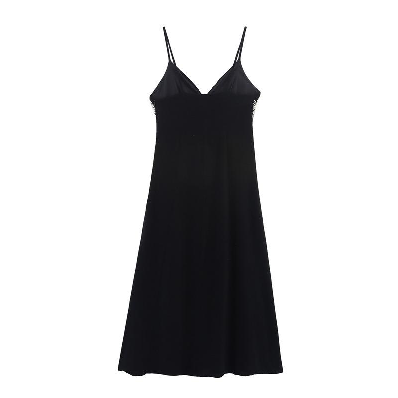 Vestido Midi Bordado Estilo Europeu e Americano Fashion e Sexy Decote V Look Solto Emagrecedor Saia Suspender Saia Longa 3897112