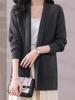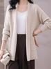 Casaco Suéter de Outono Feminino Comprimento Médio Outono e Inverno Gola Cachecol Estilo Preguiçoso Cardigã Tricotado Roupa Externa Solta Suéter Tricotado