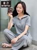 Conjunto Feminino Casual de Duas Peças Zhenxi Nova Camiseta de Manga Curta com Capuz e Renda e Calças de Pernas Largas Sq917