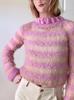Outono e Inverno Transfronteiriços 2025 Moda Europeia e Americana Design de Suéter Texturizado Listrado Rosa Tricotado Gola Redonda Suéter Pulôver para Mulheres