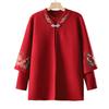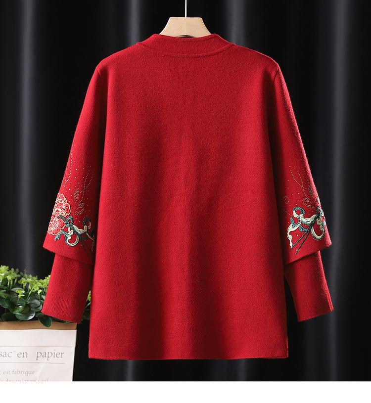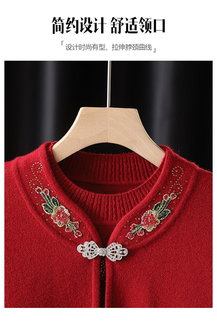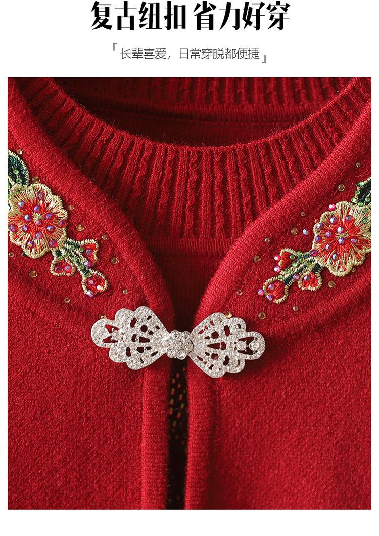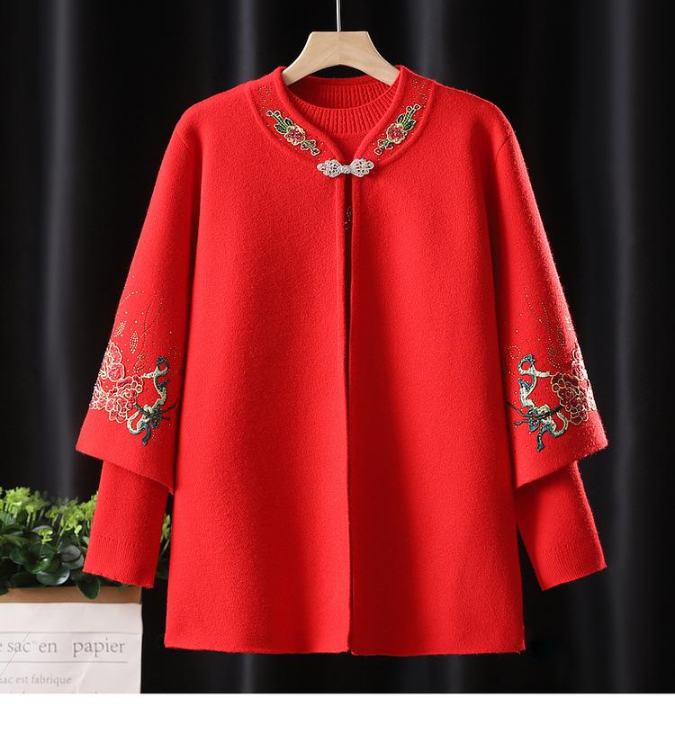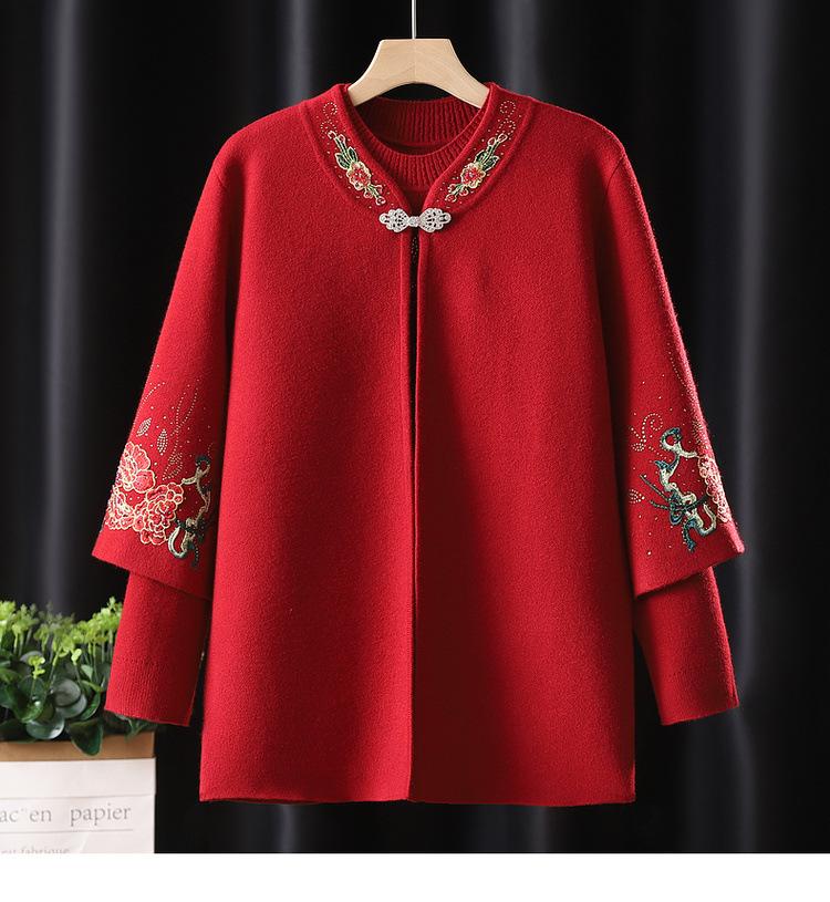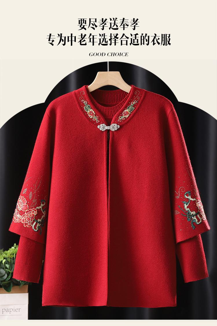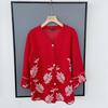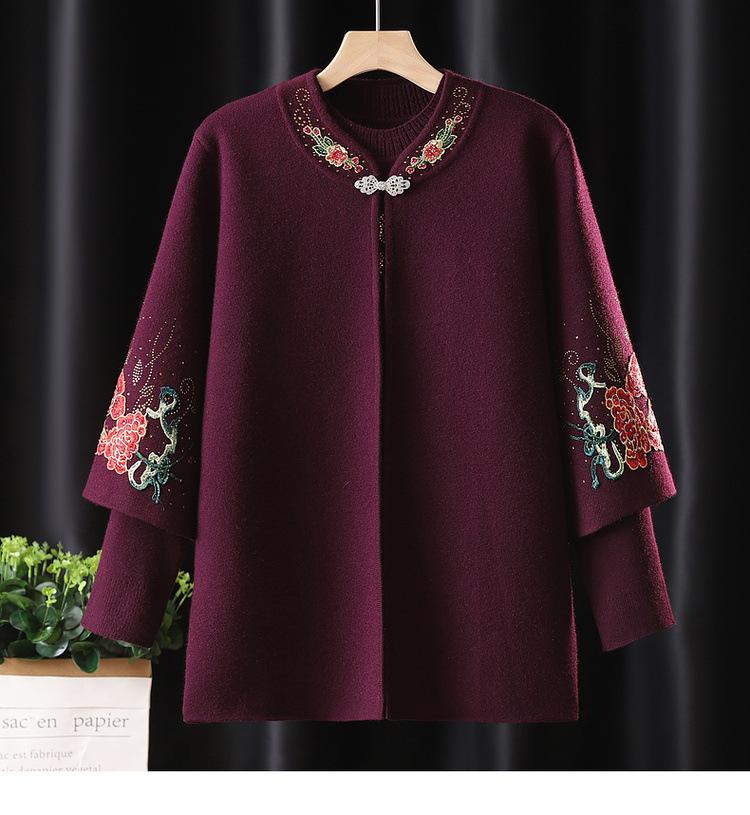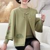 Cardigã de Tricô para Nova Mamãe Suéter Bordado da Moda Casaco Top de Primavera e Outono para Mulheres de Meia-Idade e Idosas Conjunto de Duas Peças