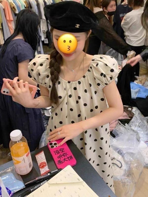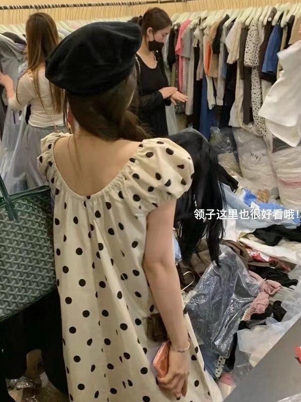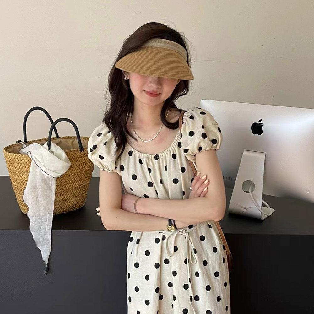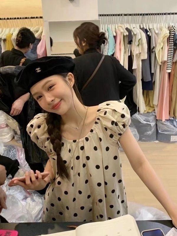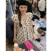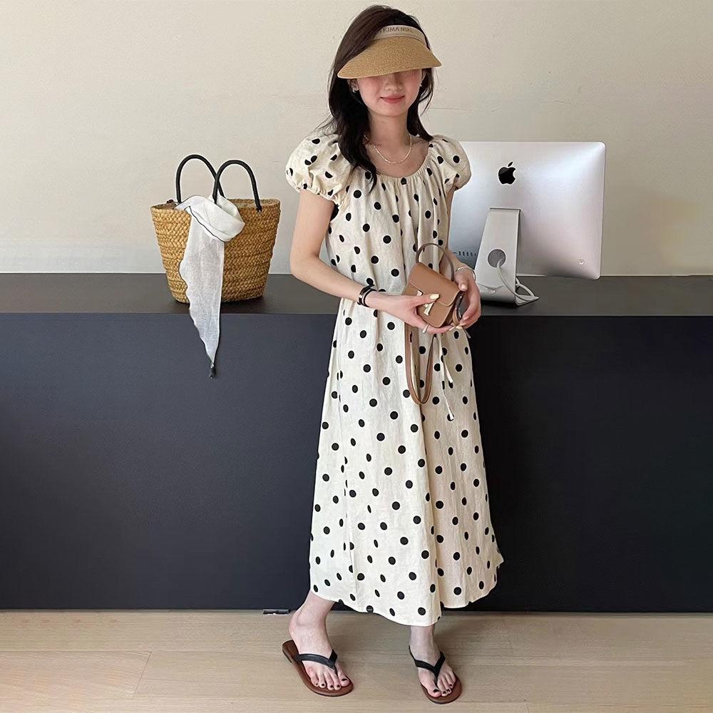 Doce Vestido de Bolinhas com Manga Bufante Redutor de Idade para Mulheres 2025 Verão Novo Estilo Estilo Francês Emagrecimento Doce Saia Midi