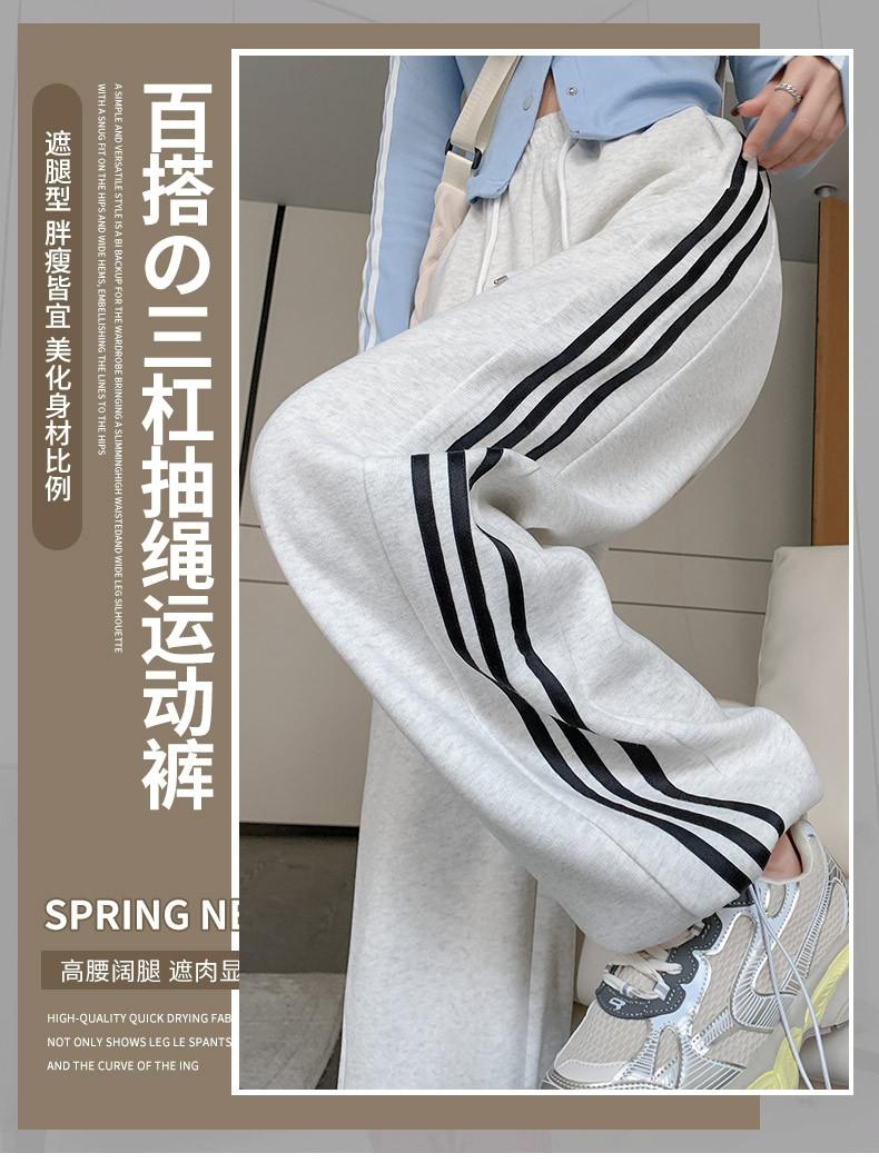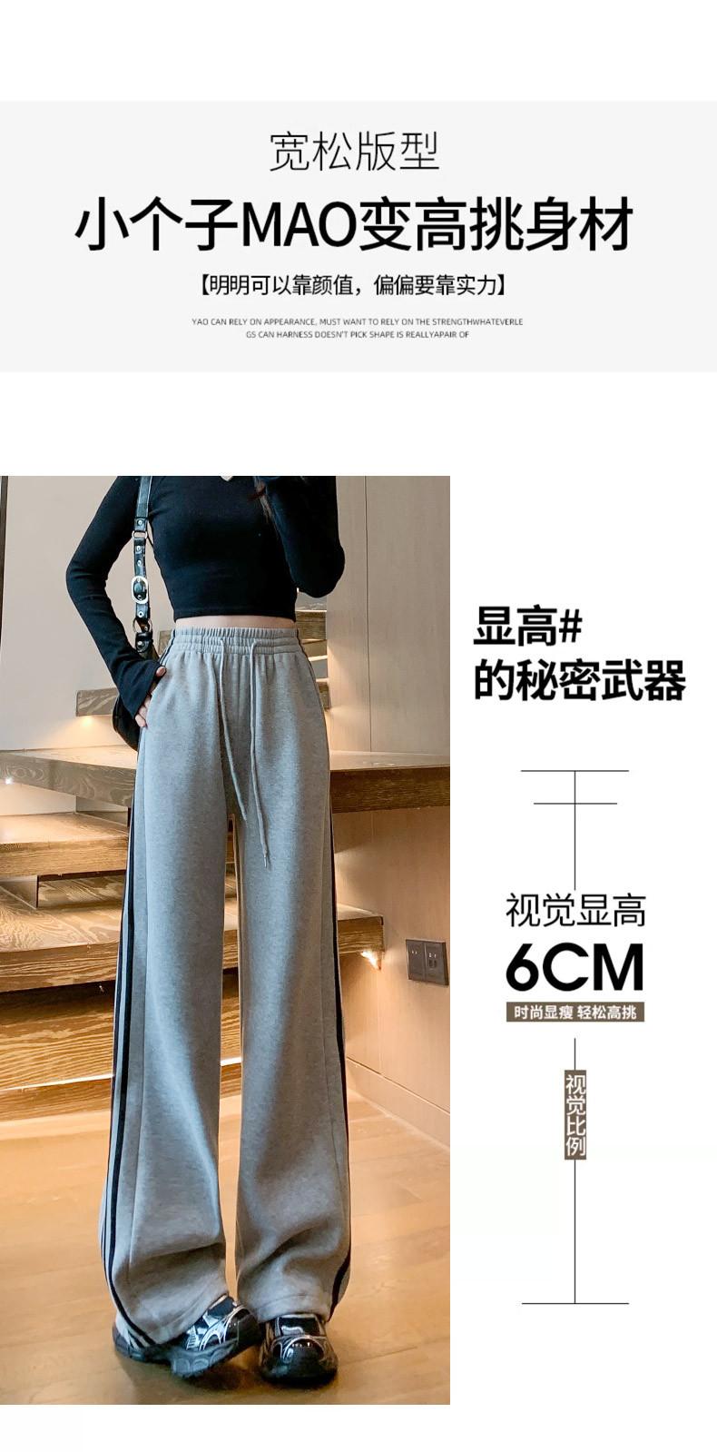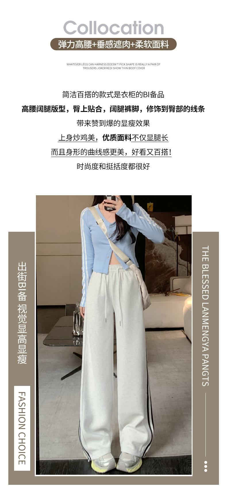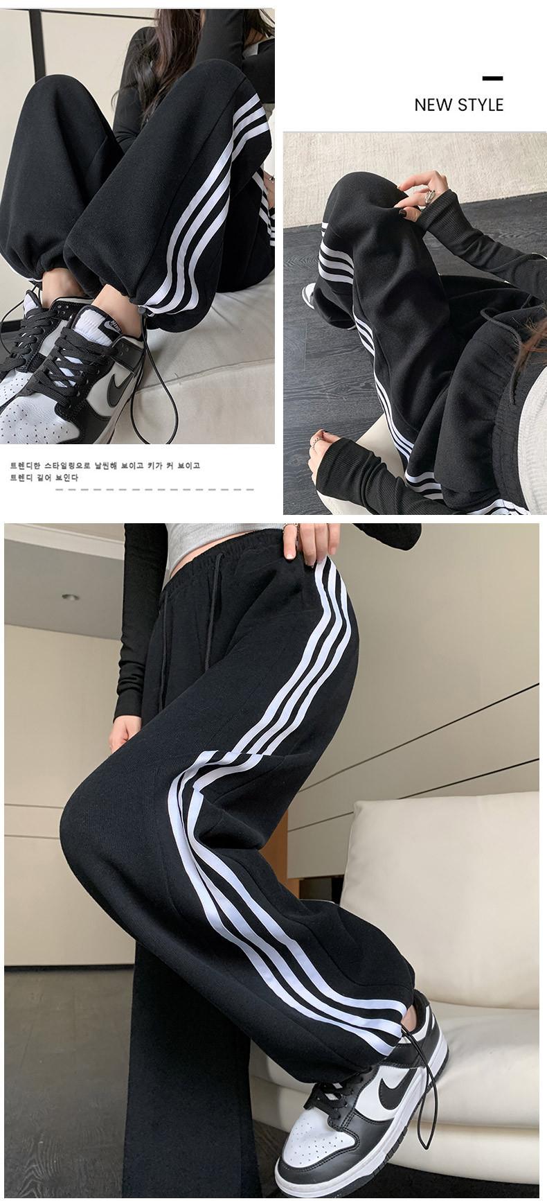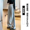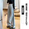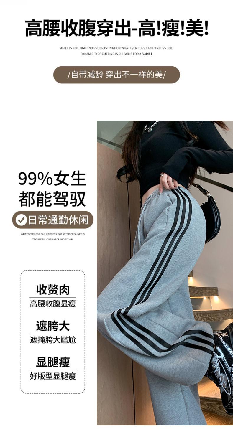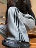 Calças de moletom listradas branco cinza femininas calças finas de perna larga petite perna reta 2025 novo outono calças de moletom estilo americano