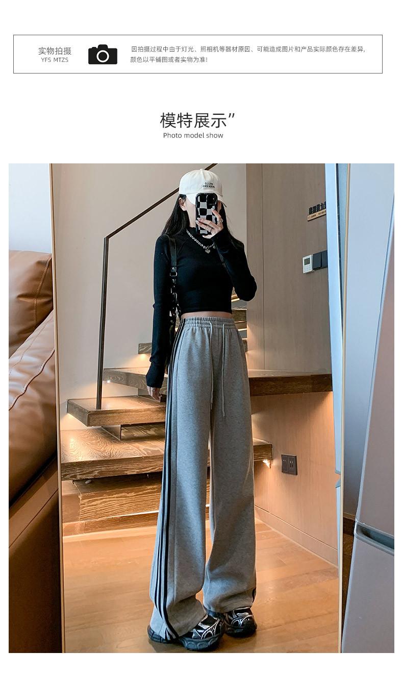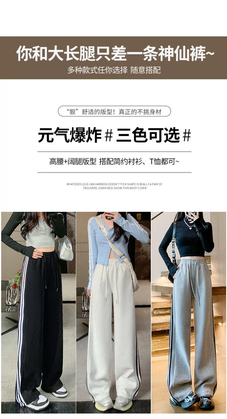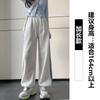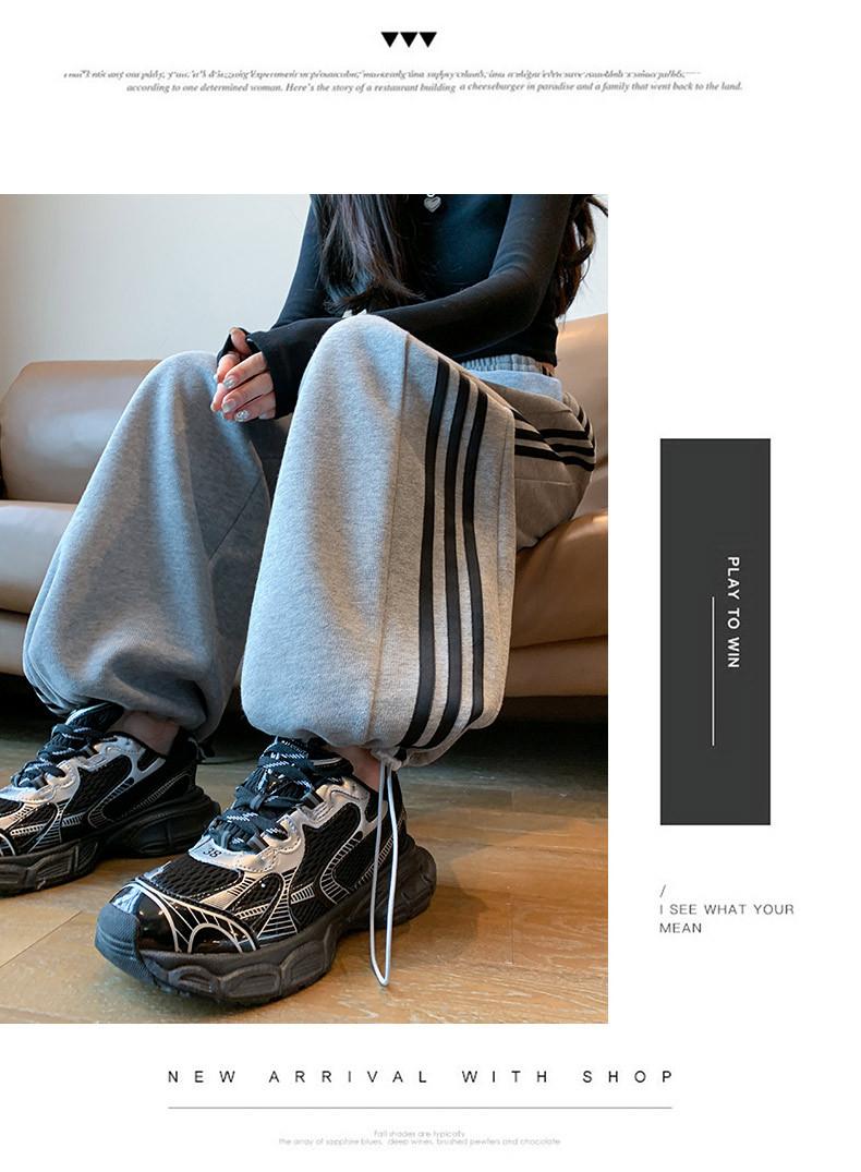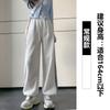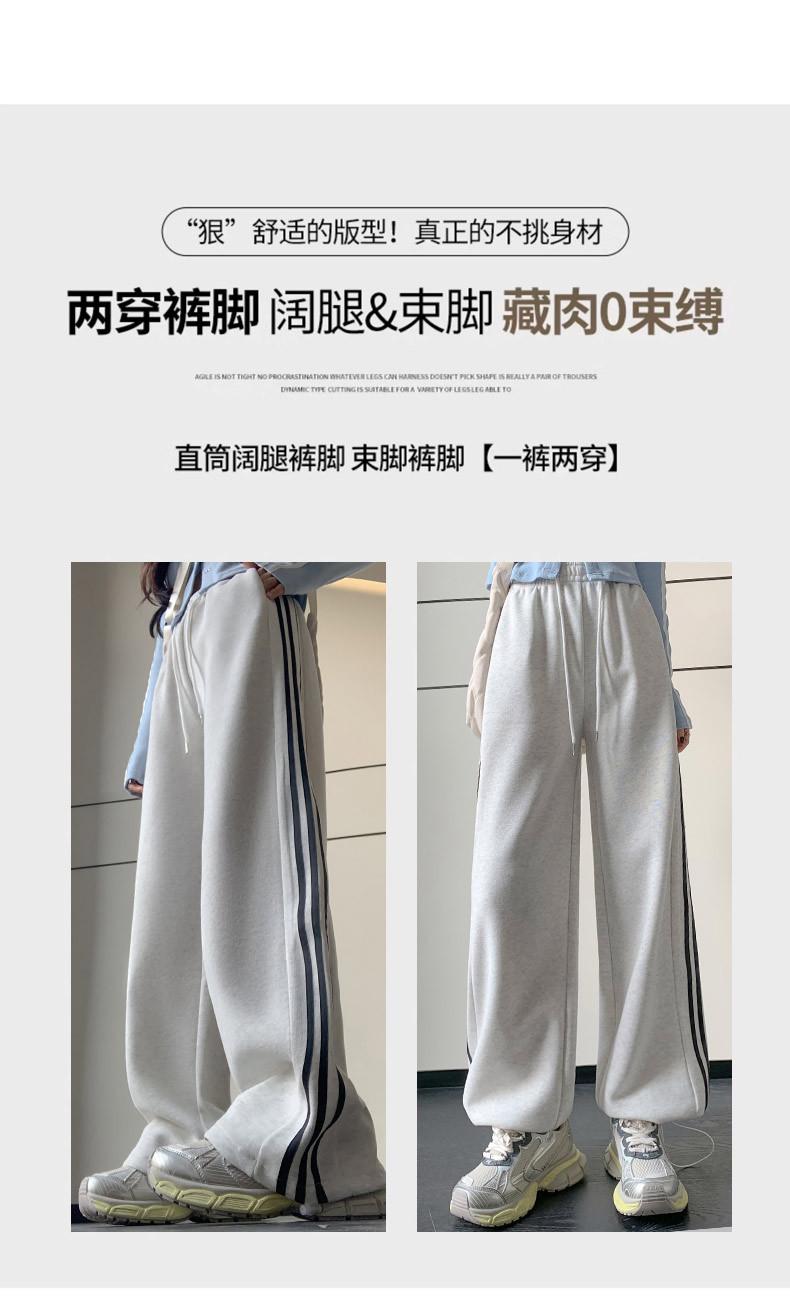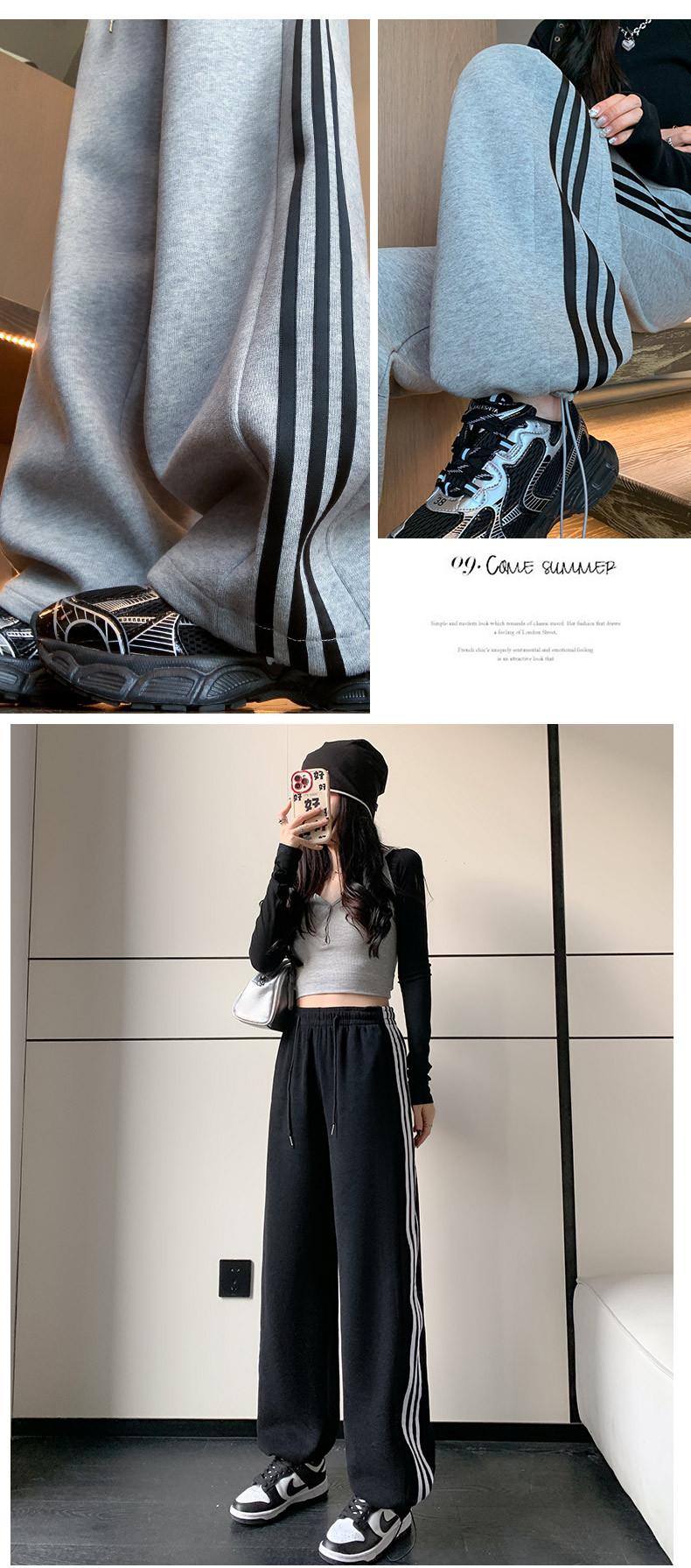 Calças de moletom listradas branco cinza femininas calças finas de perna larga petite perna reta 2025 novo outono calças de moletom estilo americano