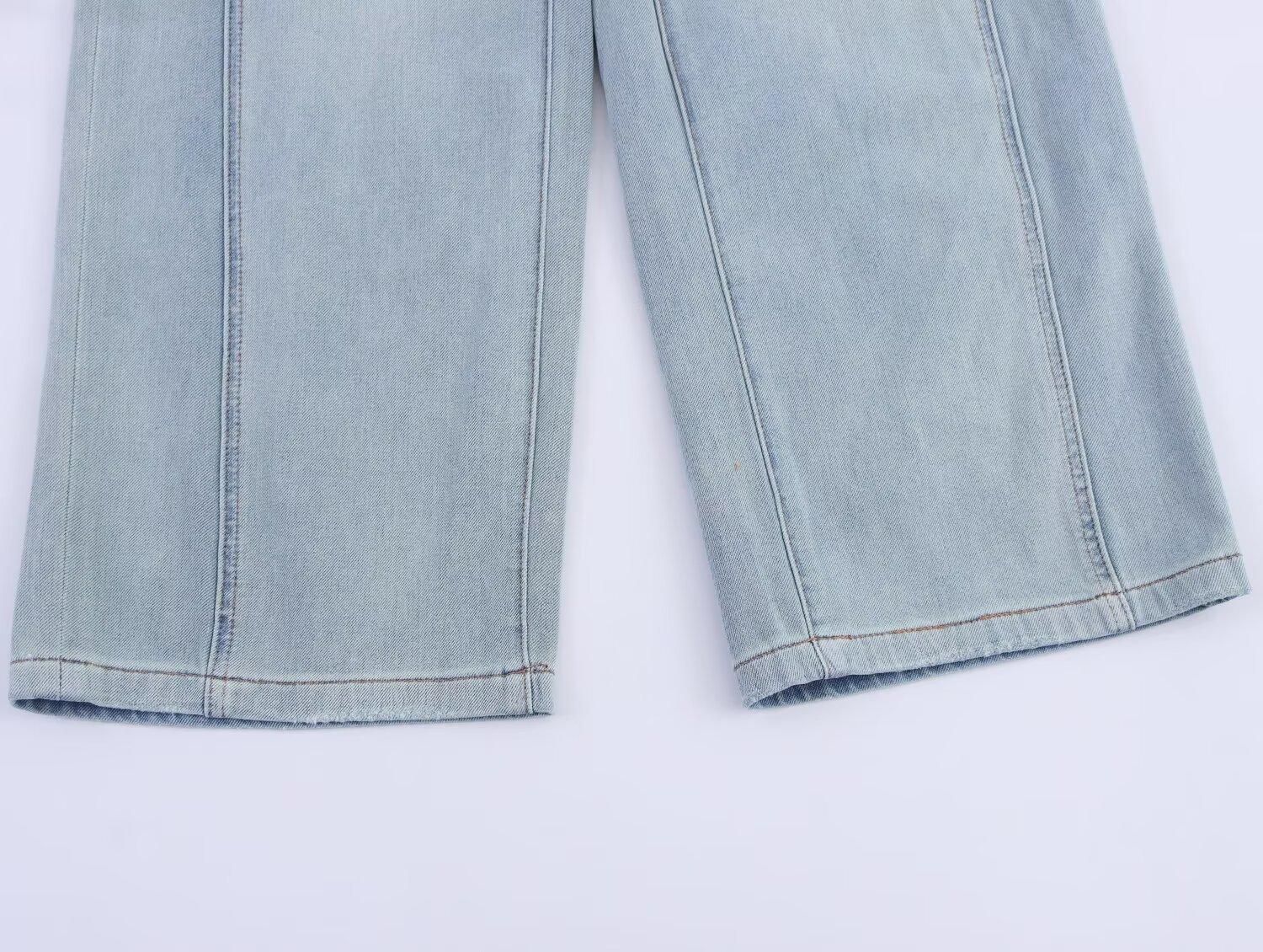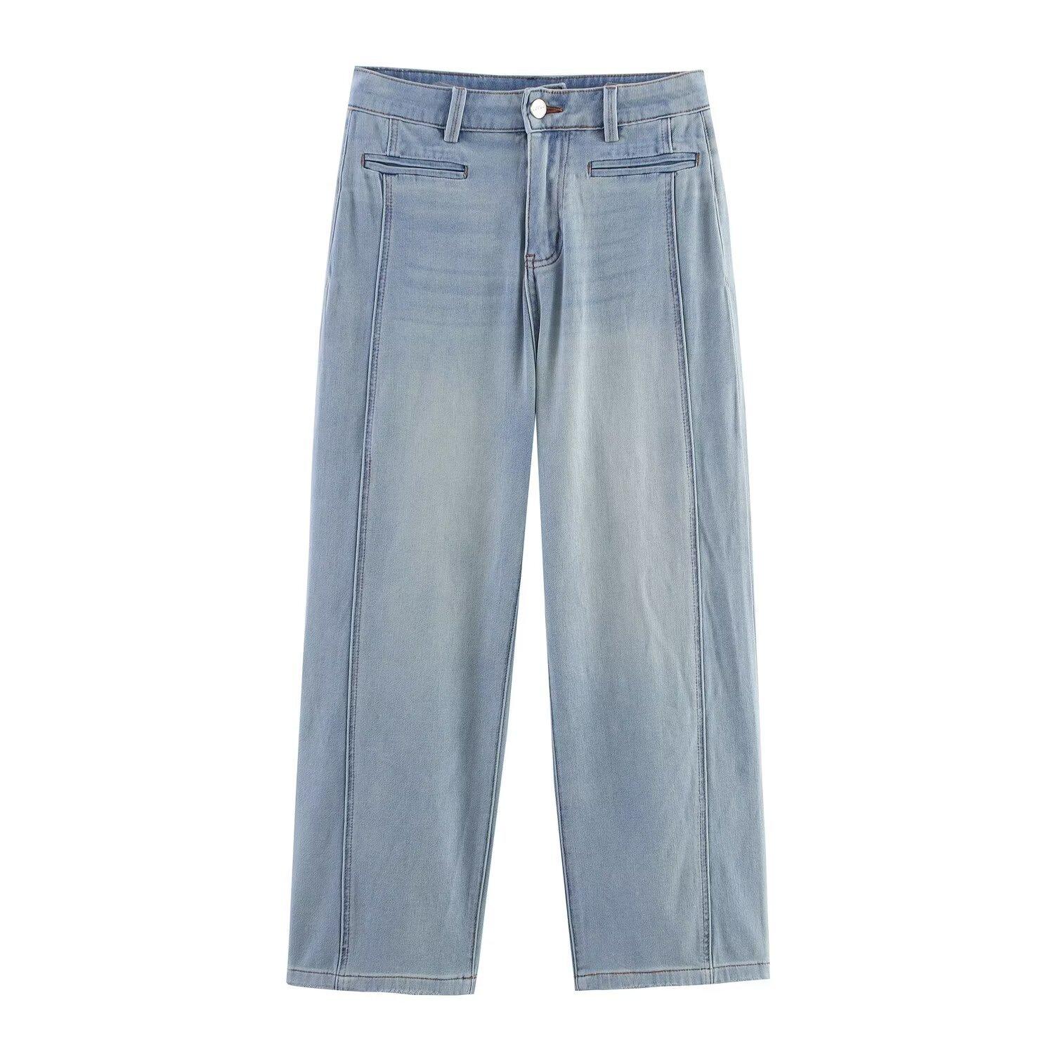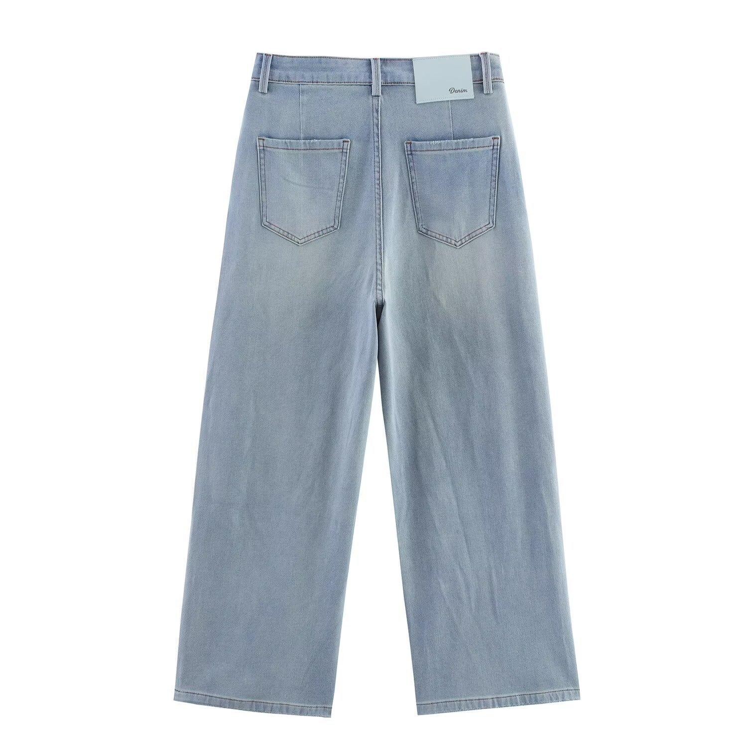 Roupas Europeias e Americanas Transfronteiriças 2025 Verão Nova Moda Alta Qualidade Retrô Solto Cintura Alta Calças Jeans de Perna Larga