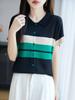 25 Anos Novo Verão Tencel Lyocell Polo Gola Tricot Cardigan Camiseta Manga Curta Feminina Combinação de Cores Top Solto