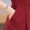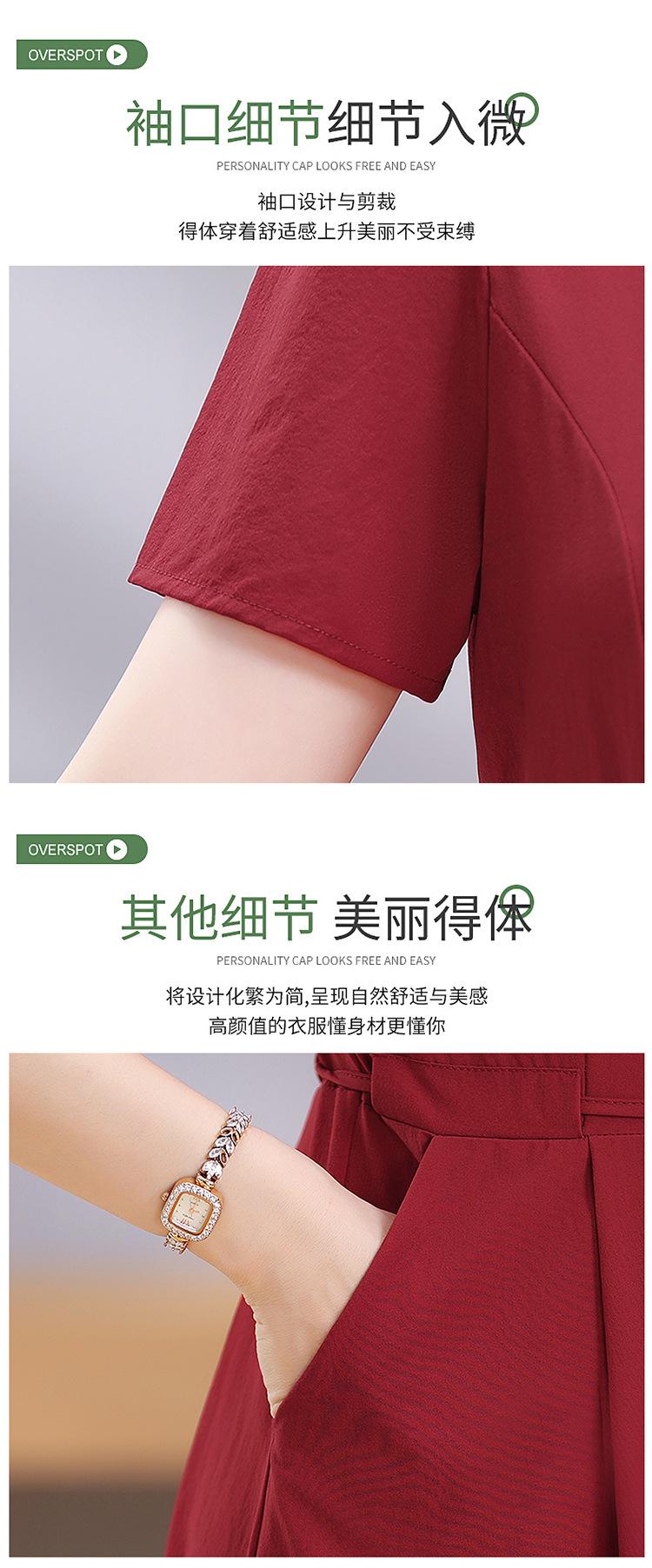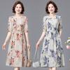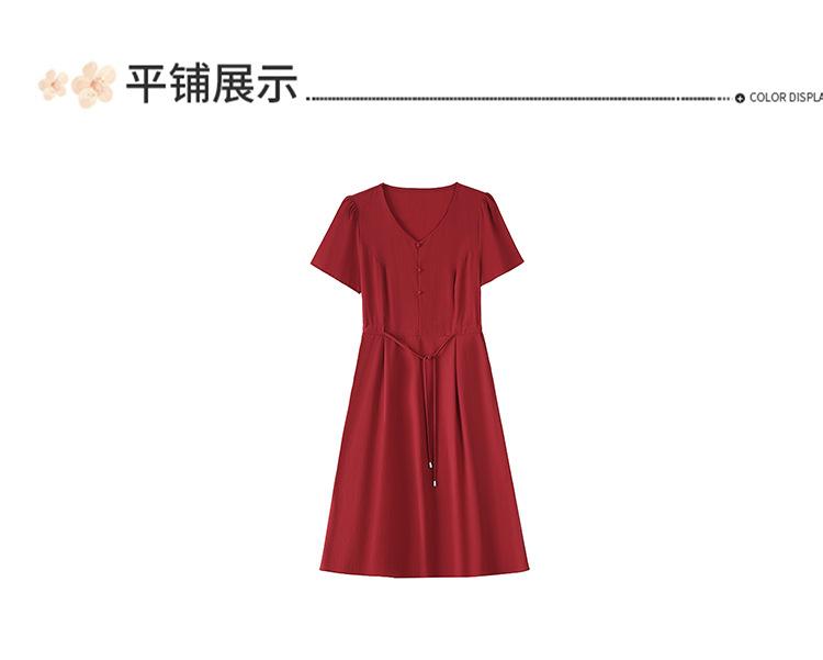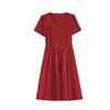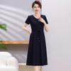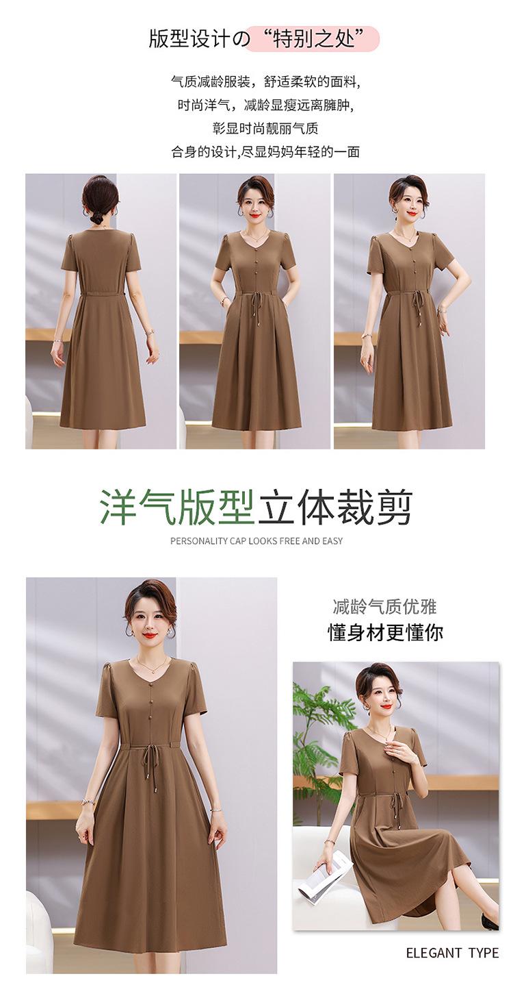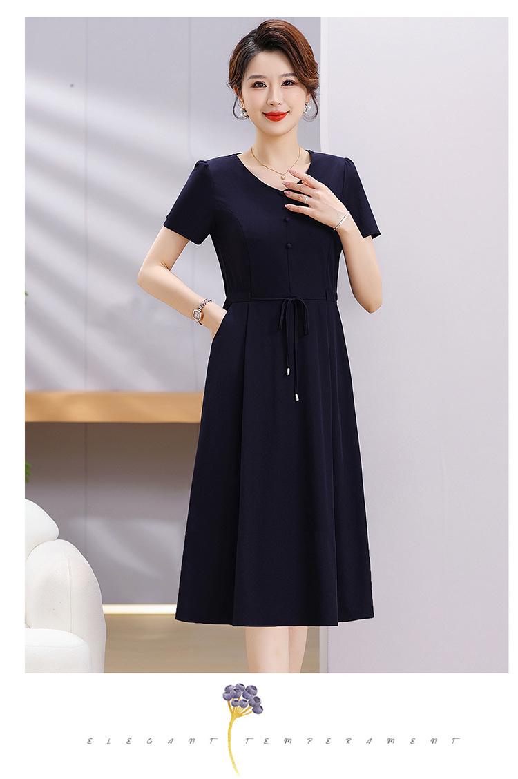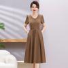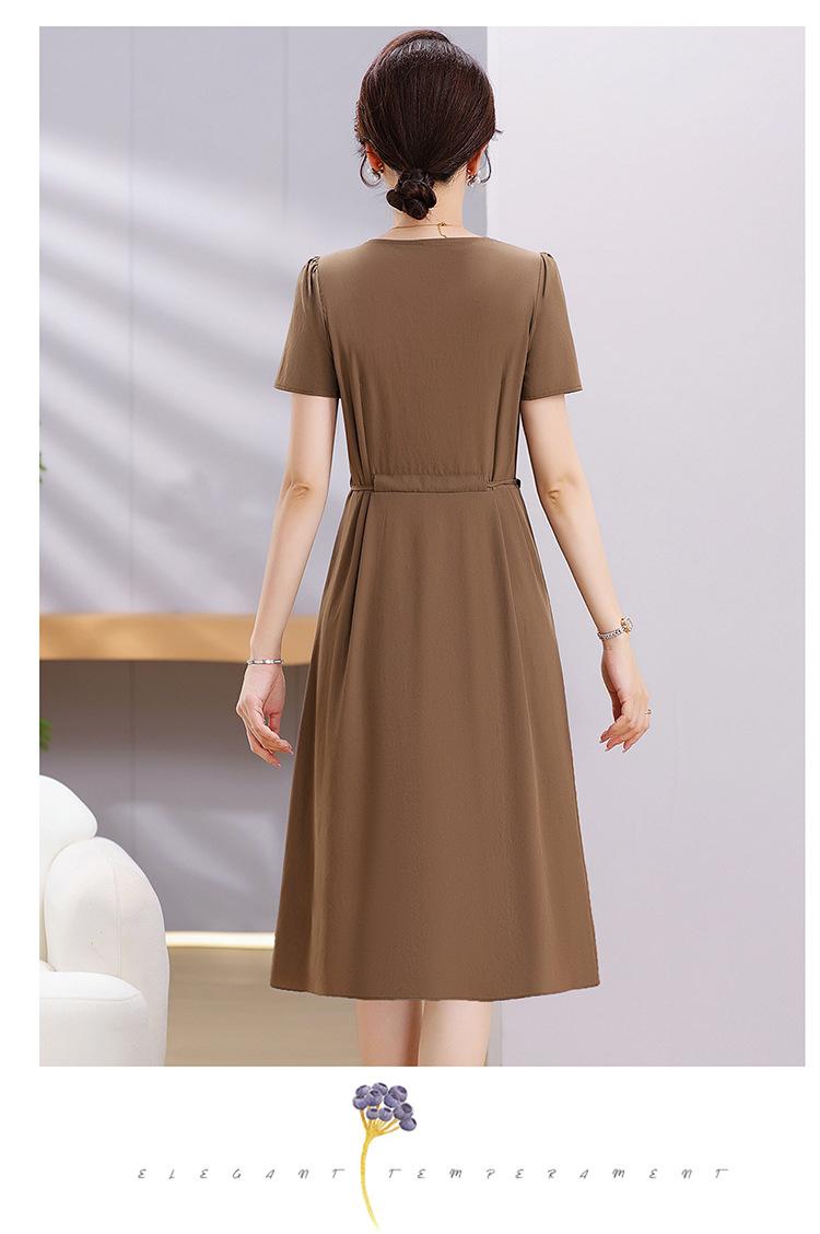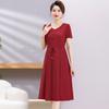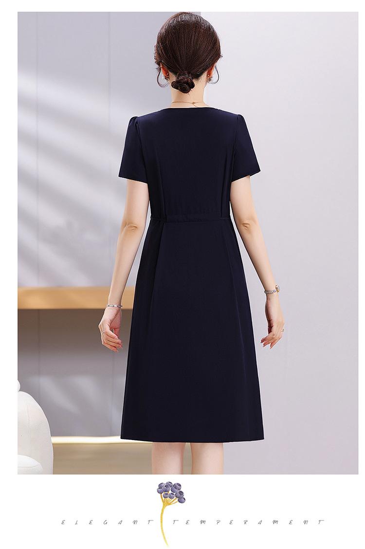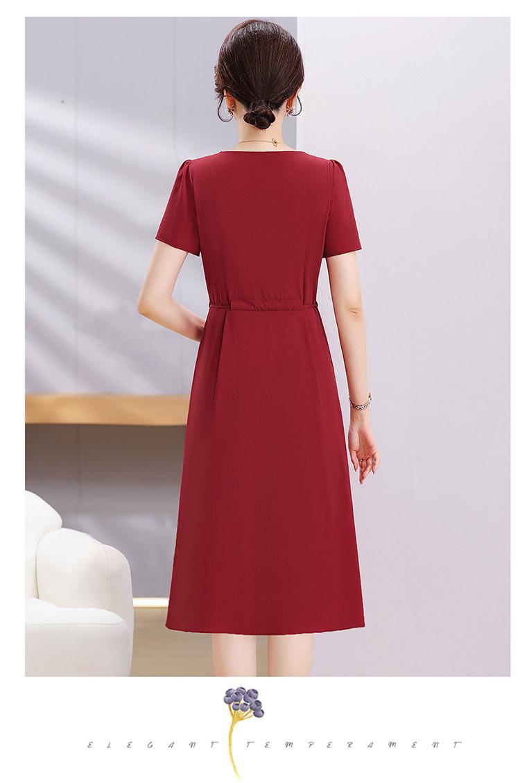 Vestido de Verão da Mamãe com Cintura e Vestido Elegante Cor Pura Look Emagrecedor Mulheres de Meia-Idade e Idosas Renda com Cordões Decote V Manga Curta Saia Midi