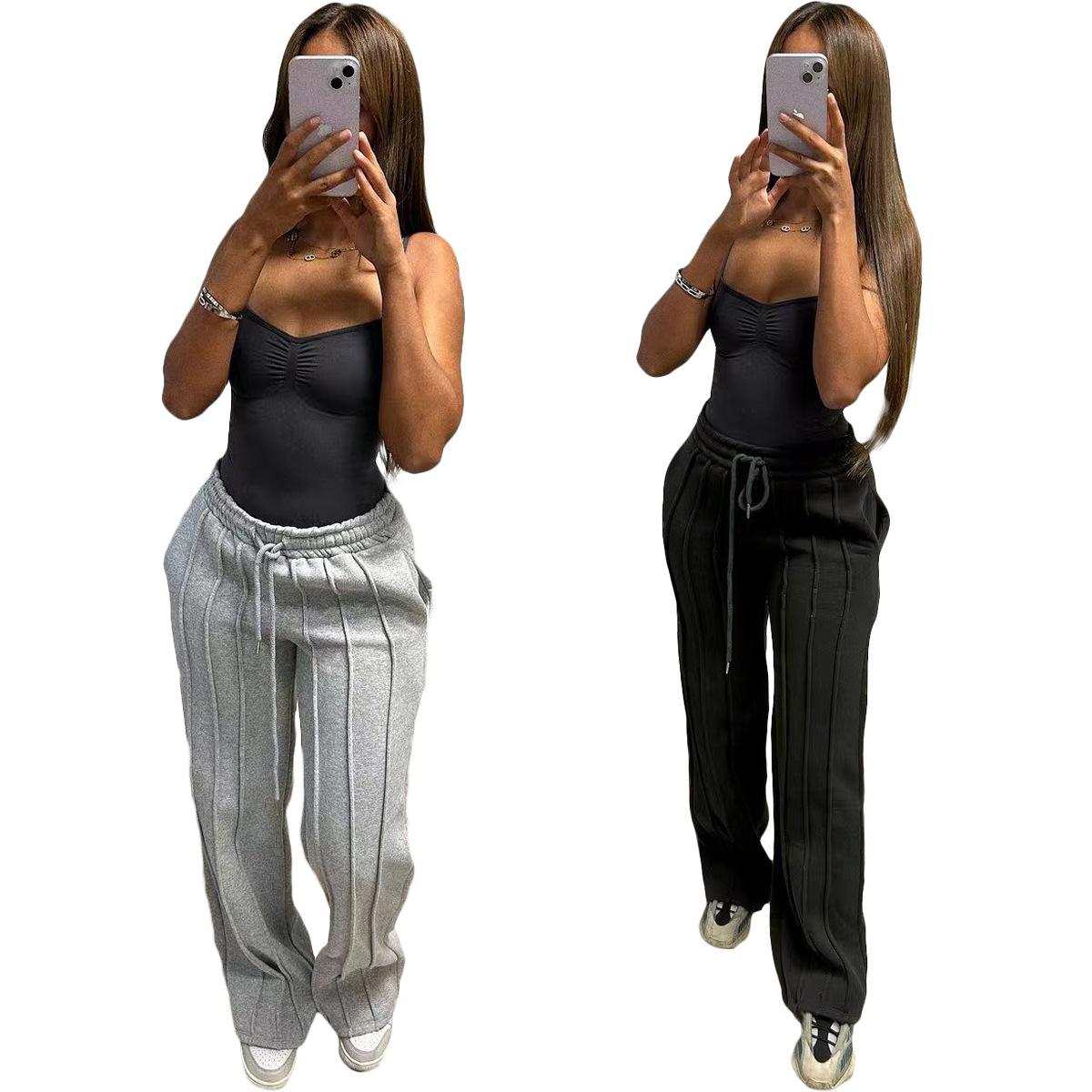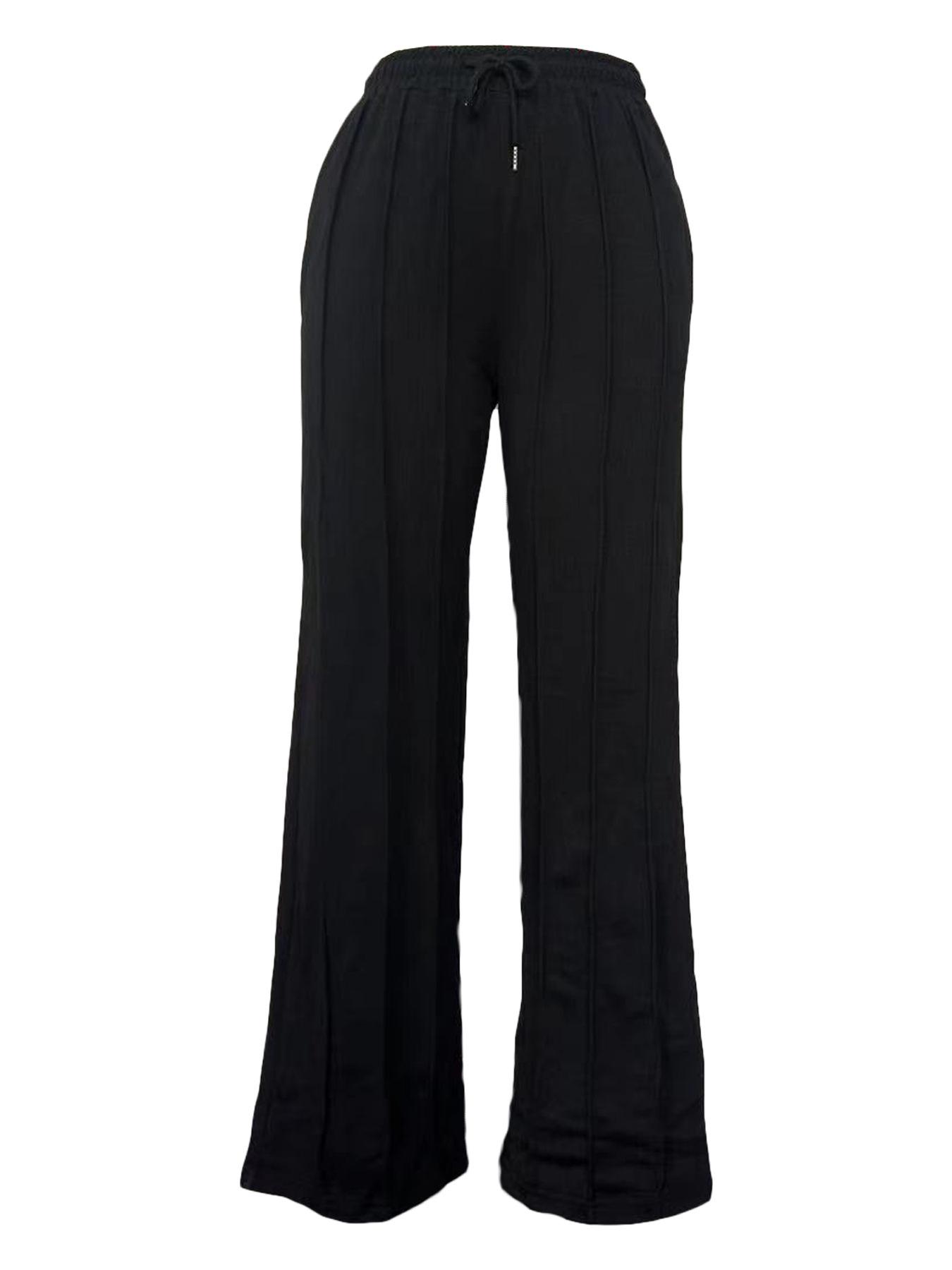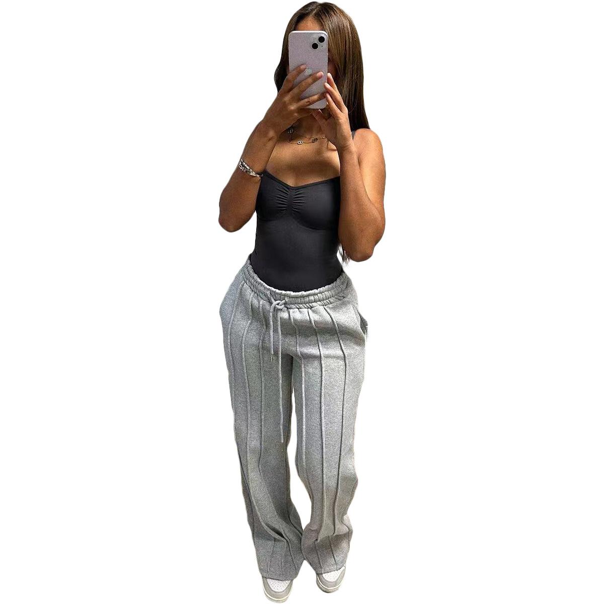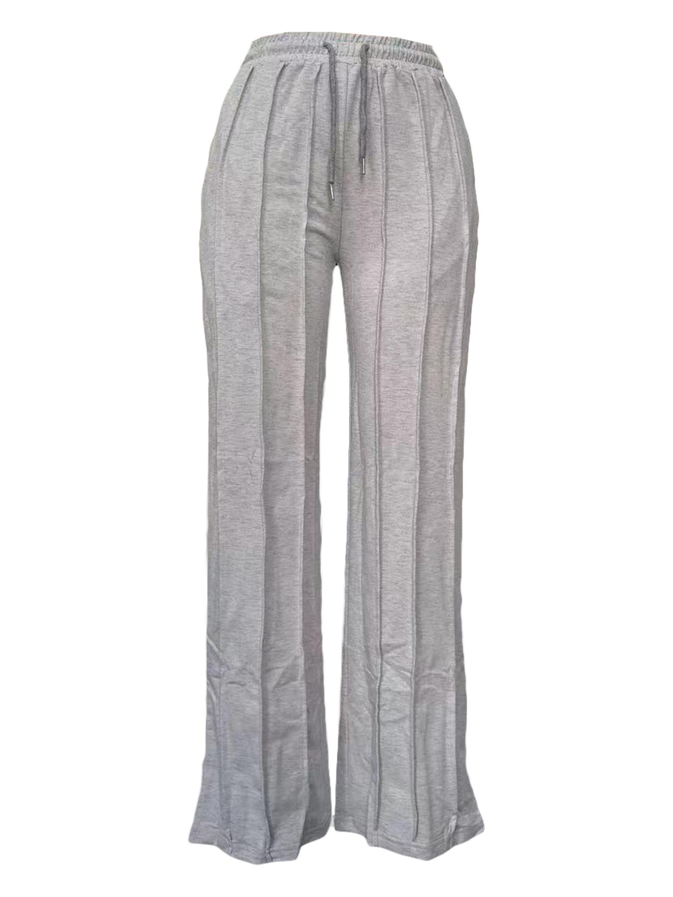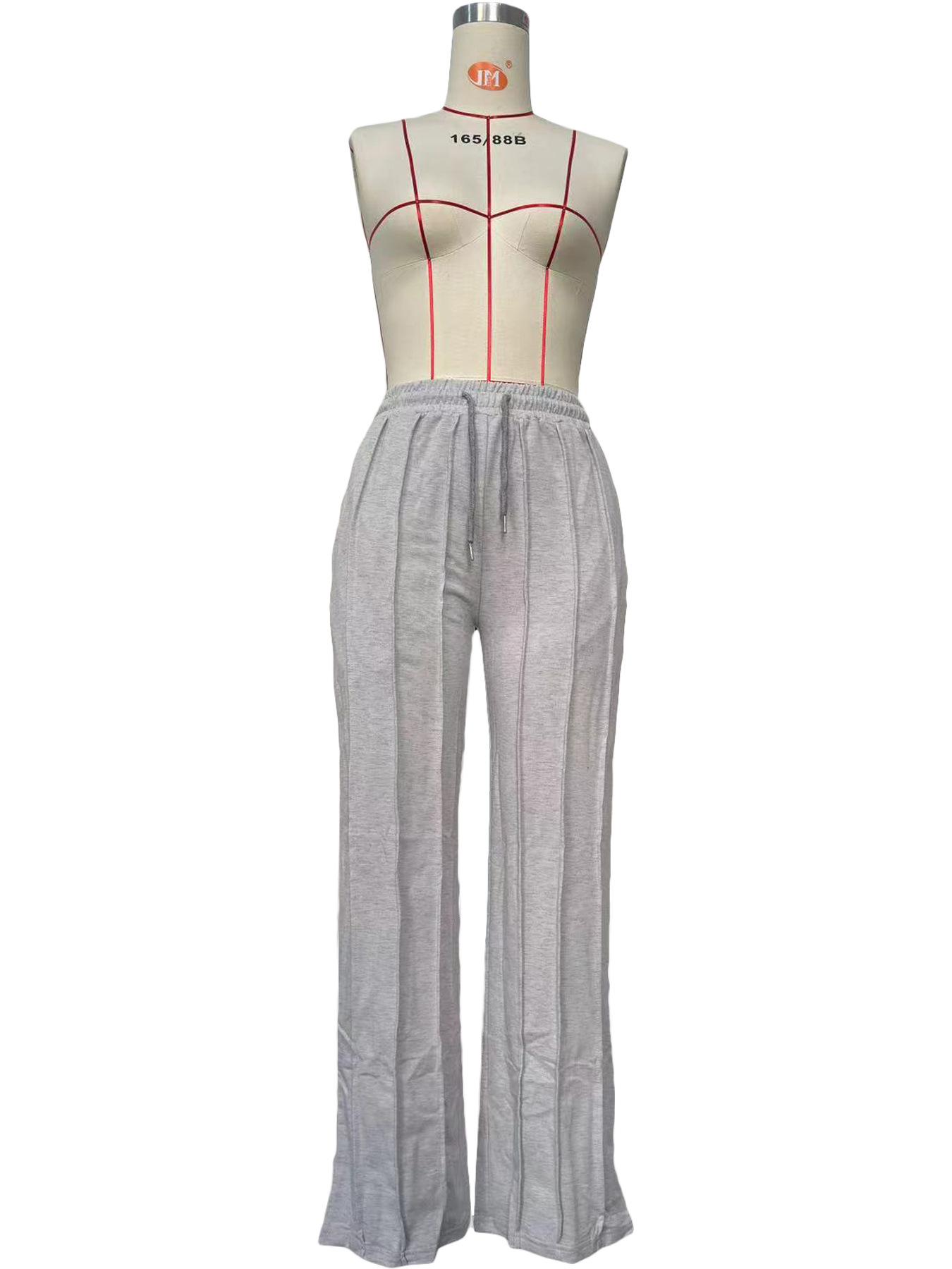 D8666 Primavera e Verão Novo Moletom Europeu e Americano Feminino Casual Cor Sólida Plissado Calças Longas Largas Amazon em estoque