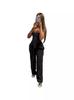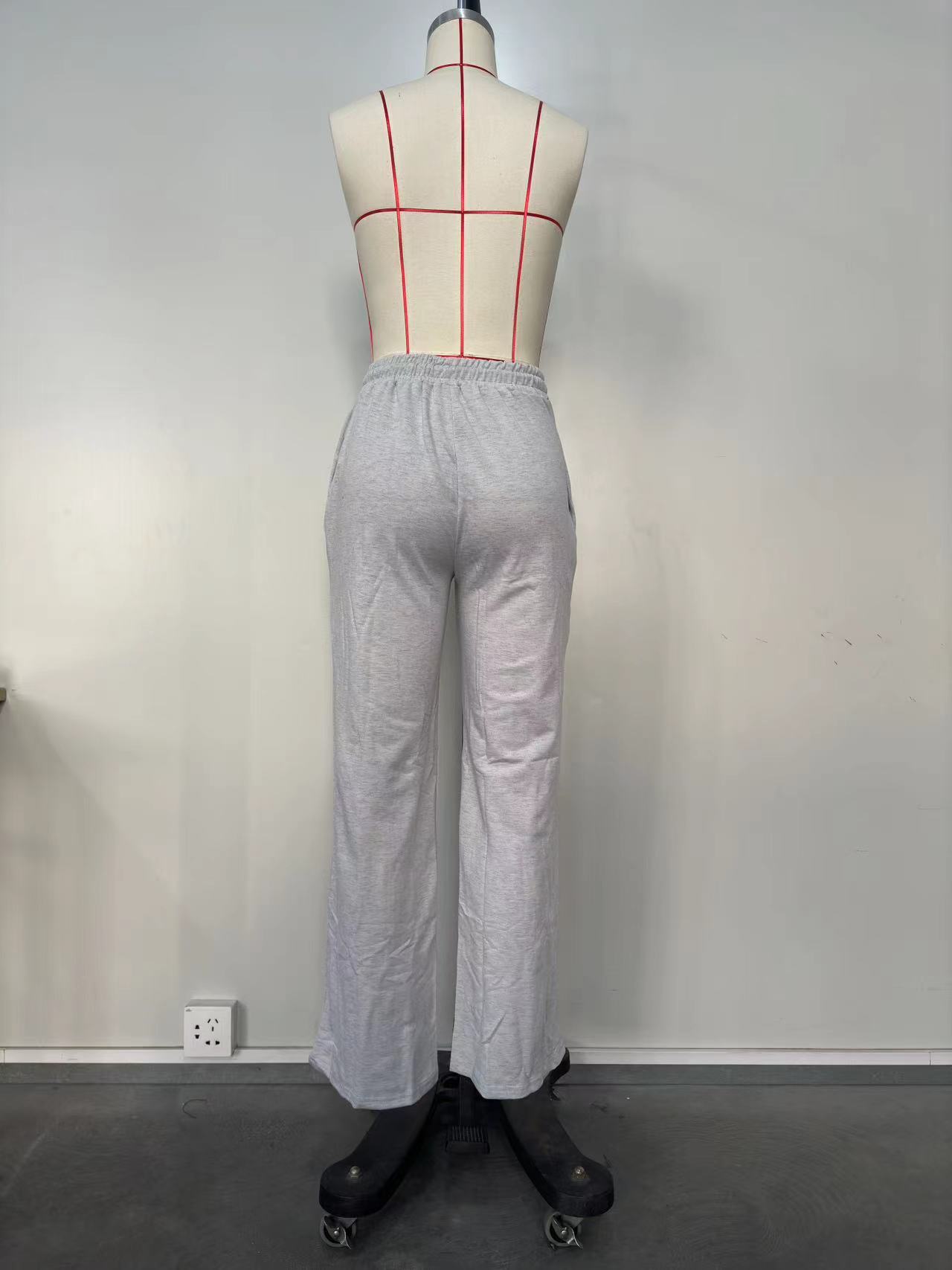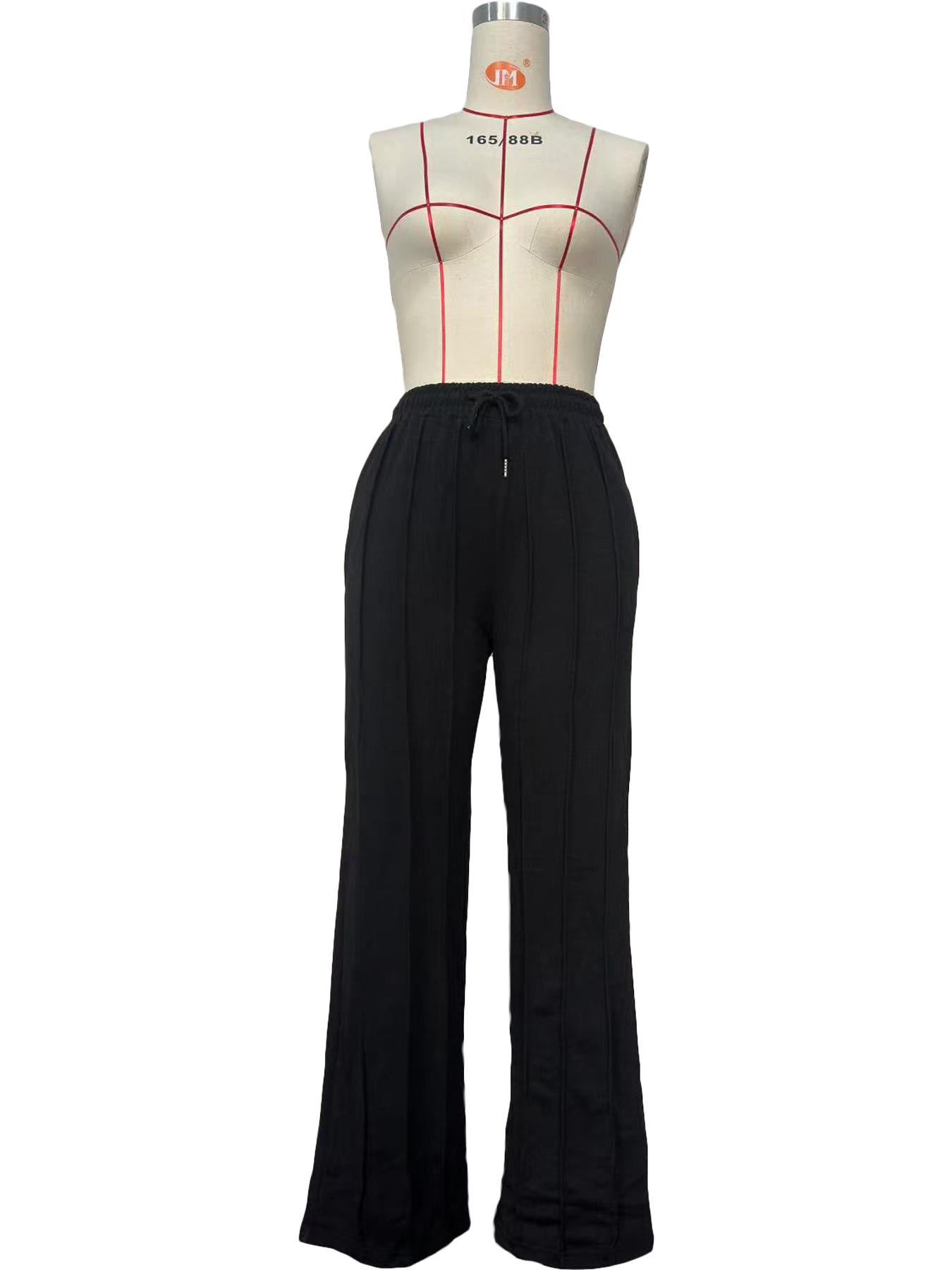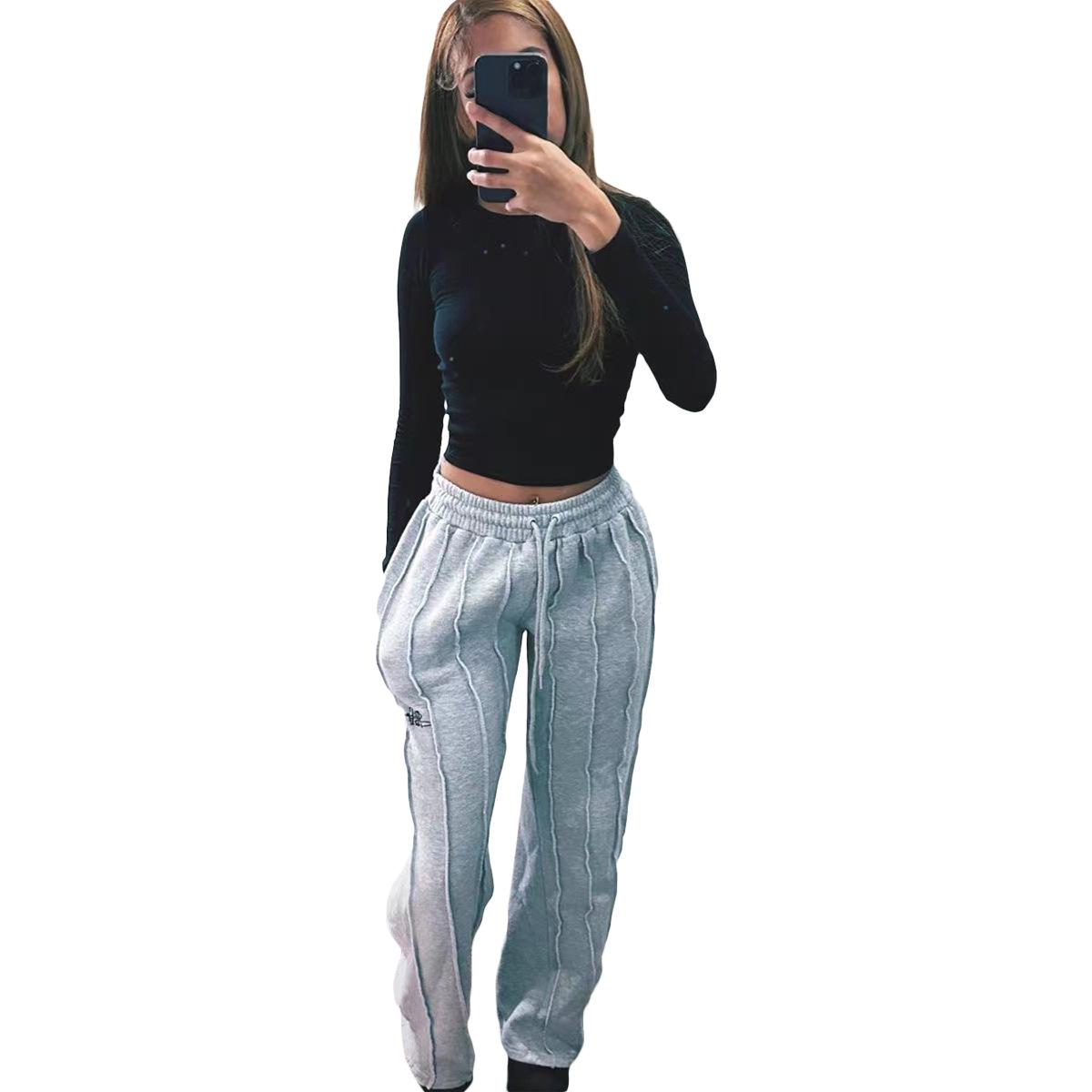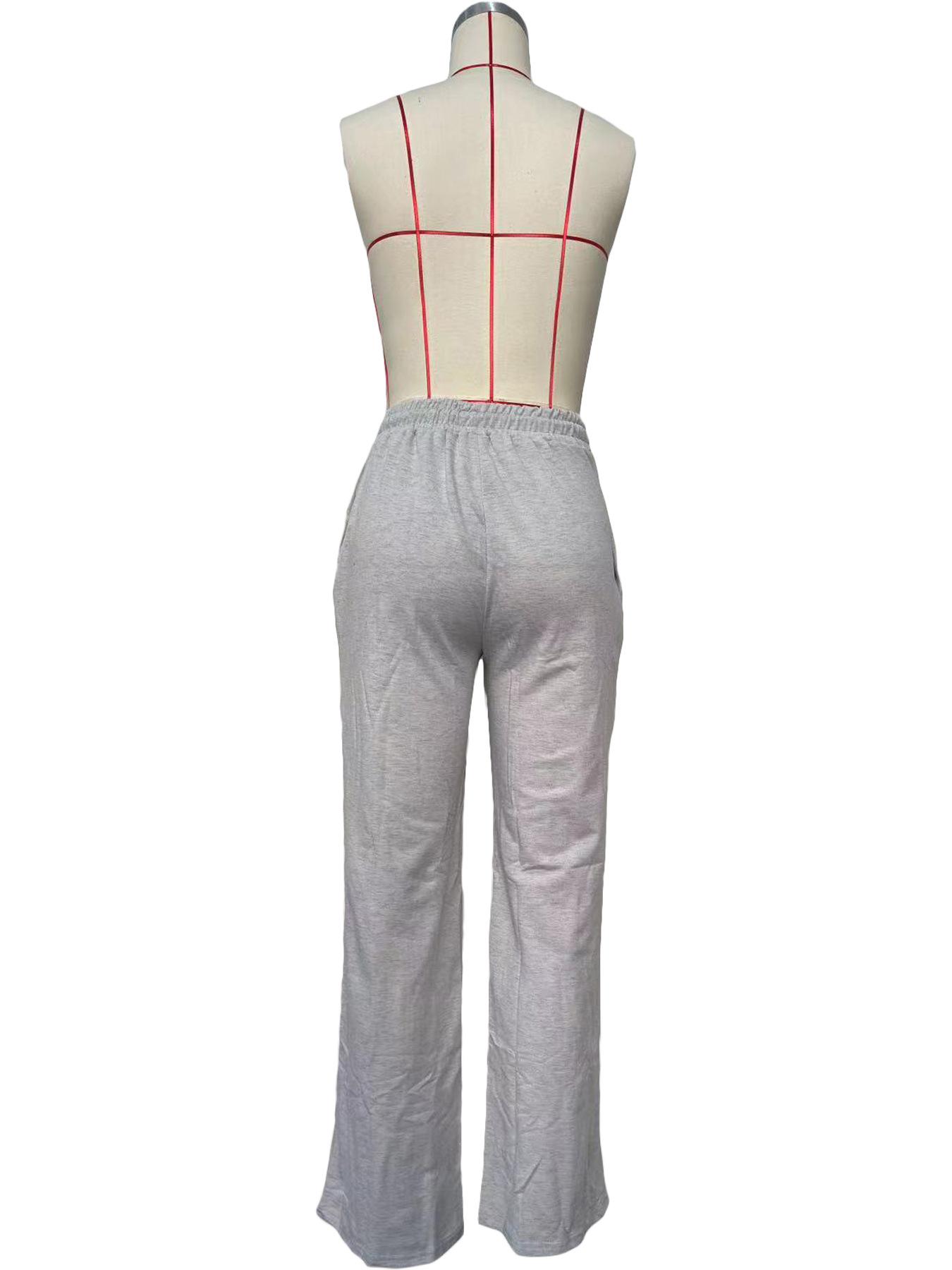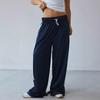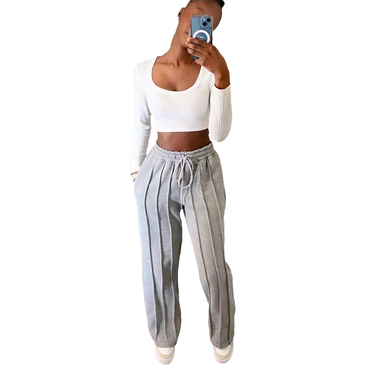 D8666 Primavera e Verão Novo Moletom Europeu e Americano Feminino Casual Cor Sólida Plissado Calças Longas Largas Amazon em estoque