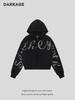 Moletom Curto com Capuz de Hip-Hop de Rua Europeu e Americano com Diamantes Quentes para Mulheres Estilo Garota Quente Americano Retrô Solto Casual Cardigã com Zíper