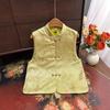 Outono e Inverno 2024 Novo Estilo Chinês Estilo Nacional Elegante Cetim Gola Vertical Sem Mangas Colete Cardigã Fivela Jacquard Colete