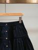 Novo Estilo de Verão para Homens Estilo Casual Francês Versátil Cor Pura Doce Linha A Abotoamento Simples Saia com Babados e Recortes