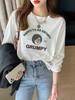Camiseta de Manga Comprida Branca de Algodão Puro Outwear Feminino Outono e Primavera 2025 Estilo Quente Nova Blusa Plus Size Solta Camiseta Pequena