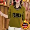 Outono e Inverno Novo Vintage Simples Chic Estampa de Letras Design Costurado Moletom Oversize Forrado com Lã Grosso Gola Redonda