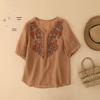 T848 Verão Novo Estilo Coreano Renda Patchwork Falso Duas Peças Manga Curta Linho de Bambu Tricô Top Mulheres Bloco de Cores Decote V Camiseta