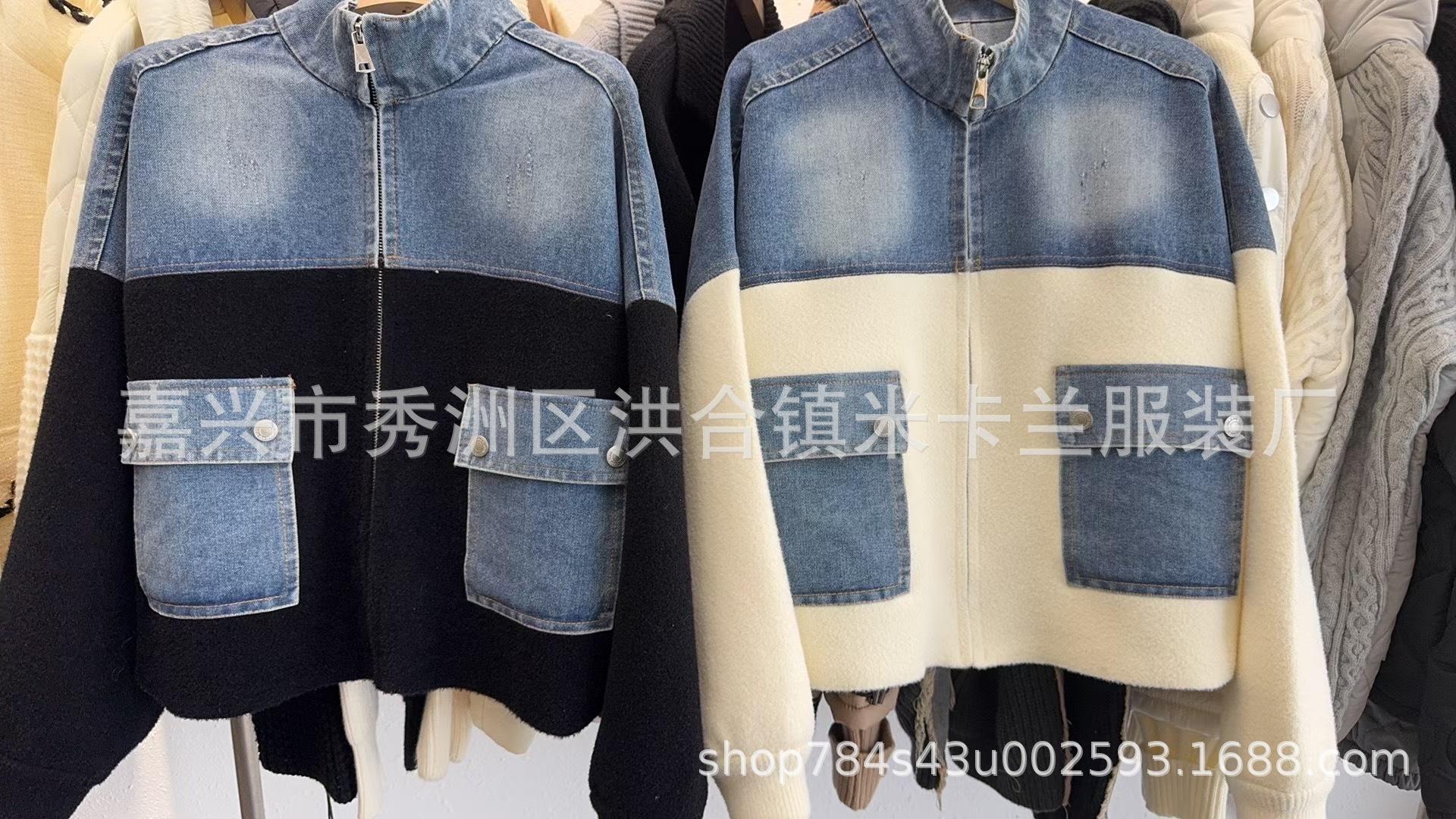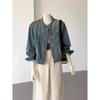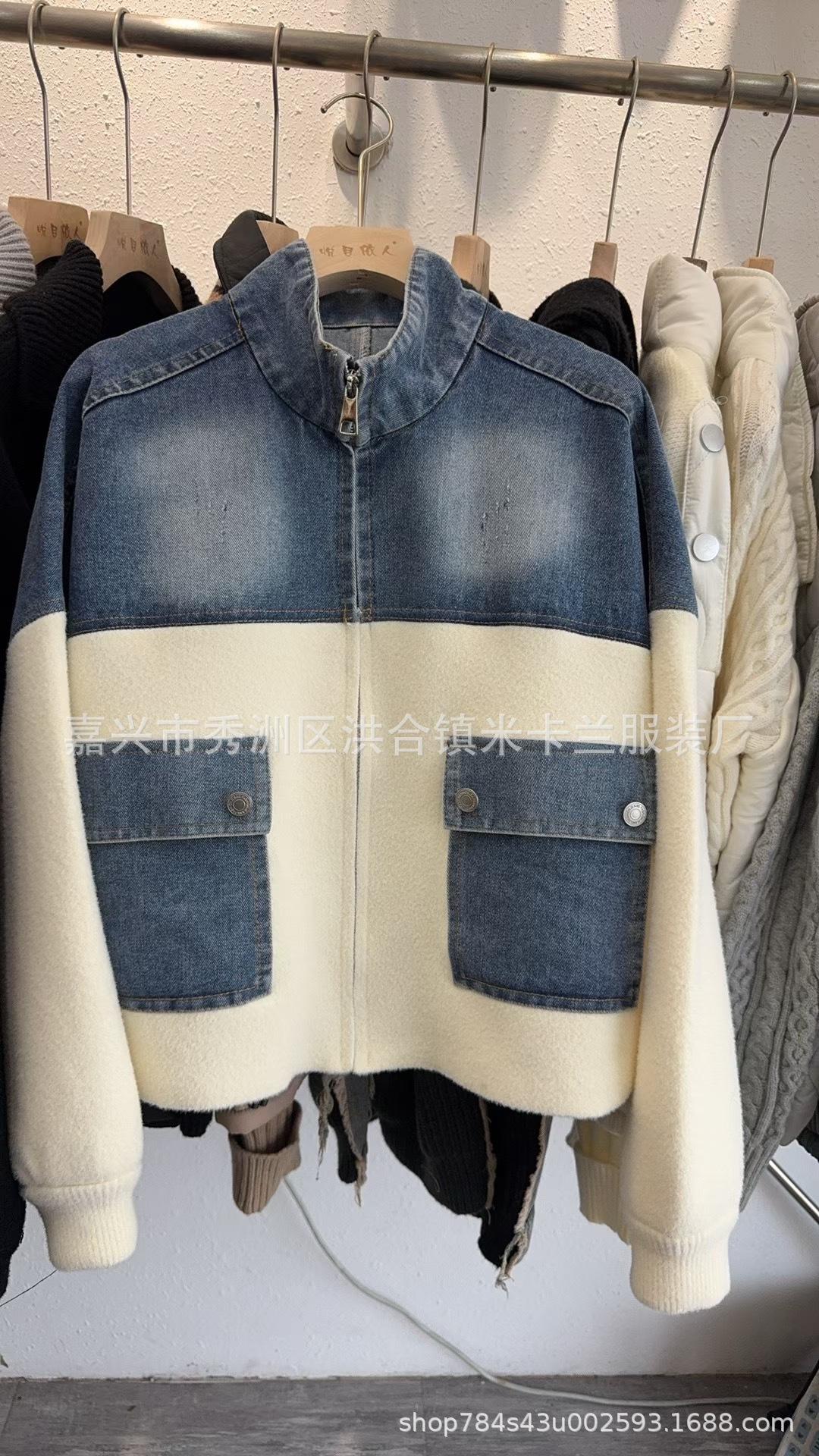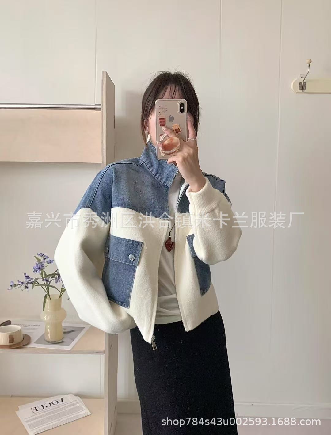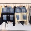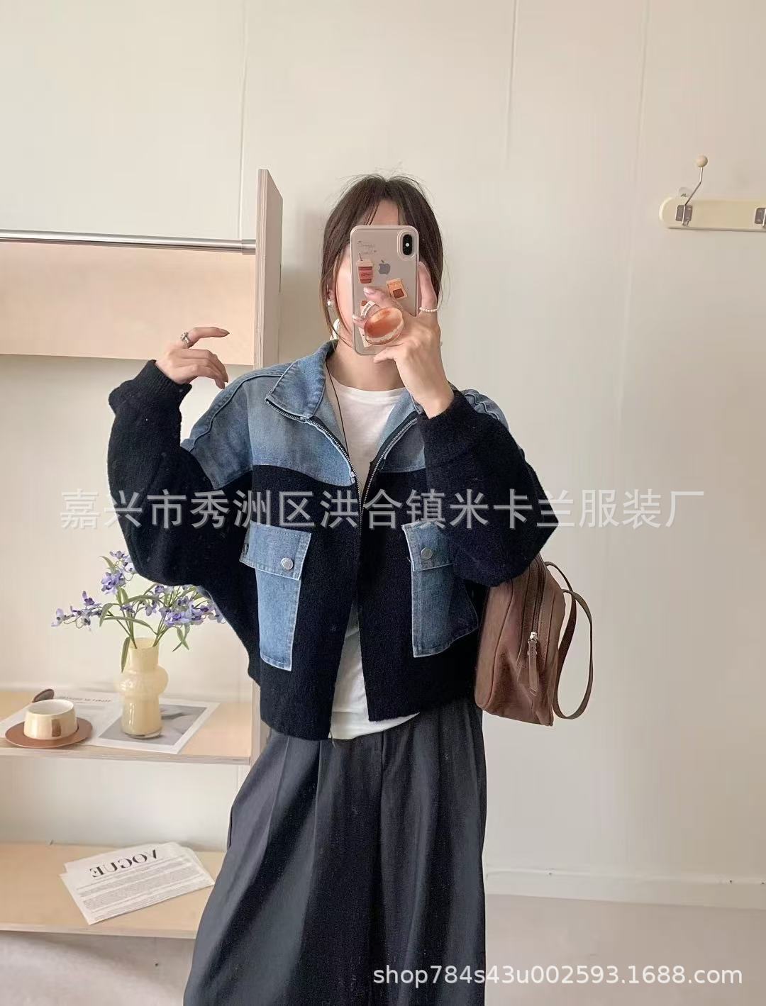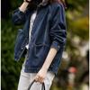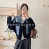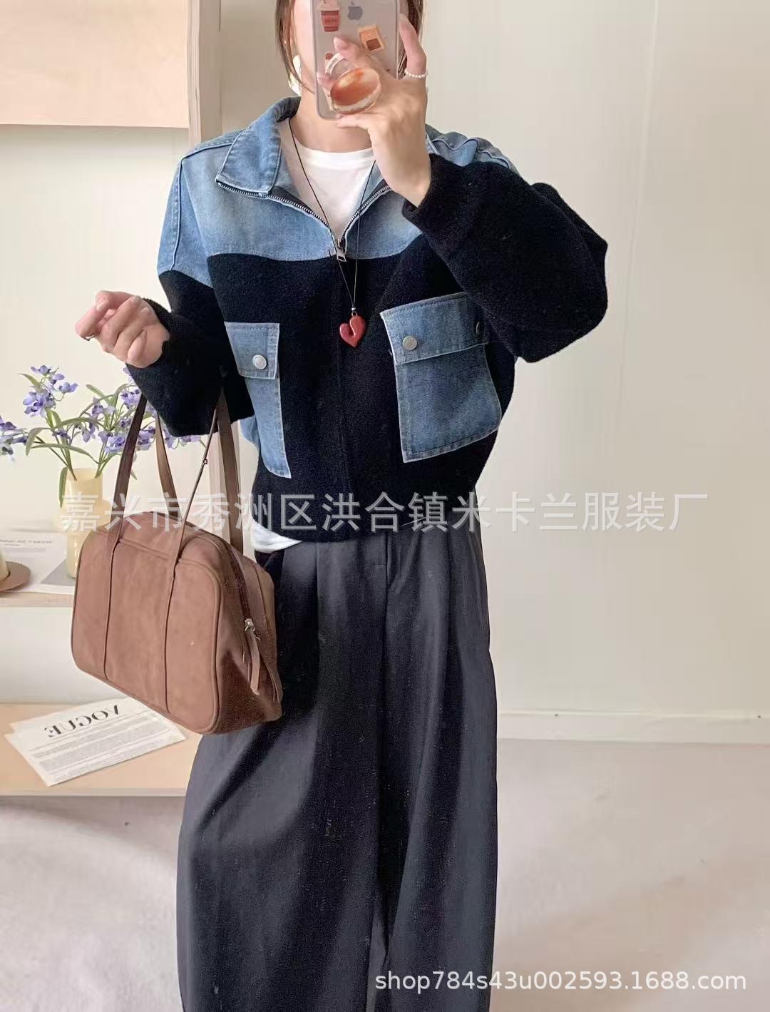2025 Novo Retrô Coreano Patchwork Gola Alta Solto Casual Redutor de Idade Jeans Zíper Jaqueta Curta Top Feminino