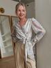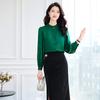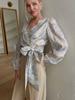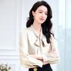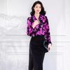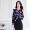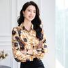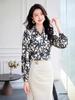 Camisa Feminina de Manga Comprida com Decote V Estampada Outono 2025, com Design, Elegante, Moda, Roupa de Trabalho Transfronteiriça Europeia e Americana